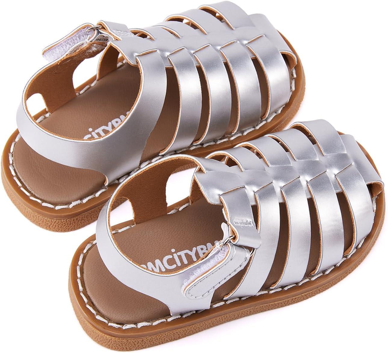 BMCiTYBM Baby Boy Girl Closed Toe Sandals Infant Summer First Walking Shoes Non-Slip Fisherman Sandals 6 9 12 18 24 Months(A-silver)