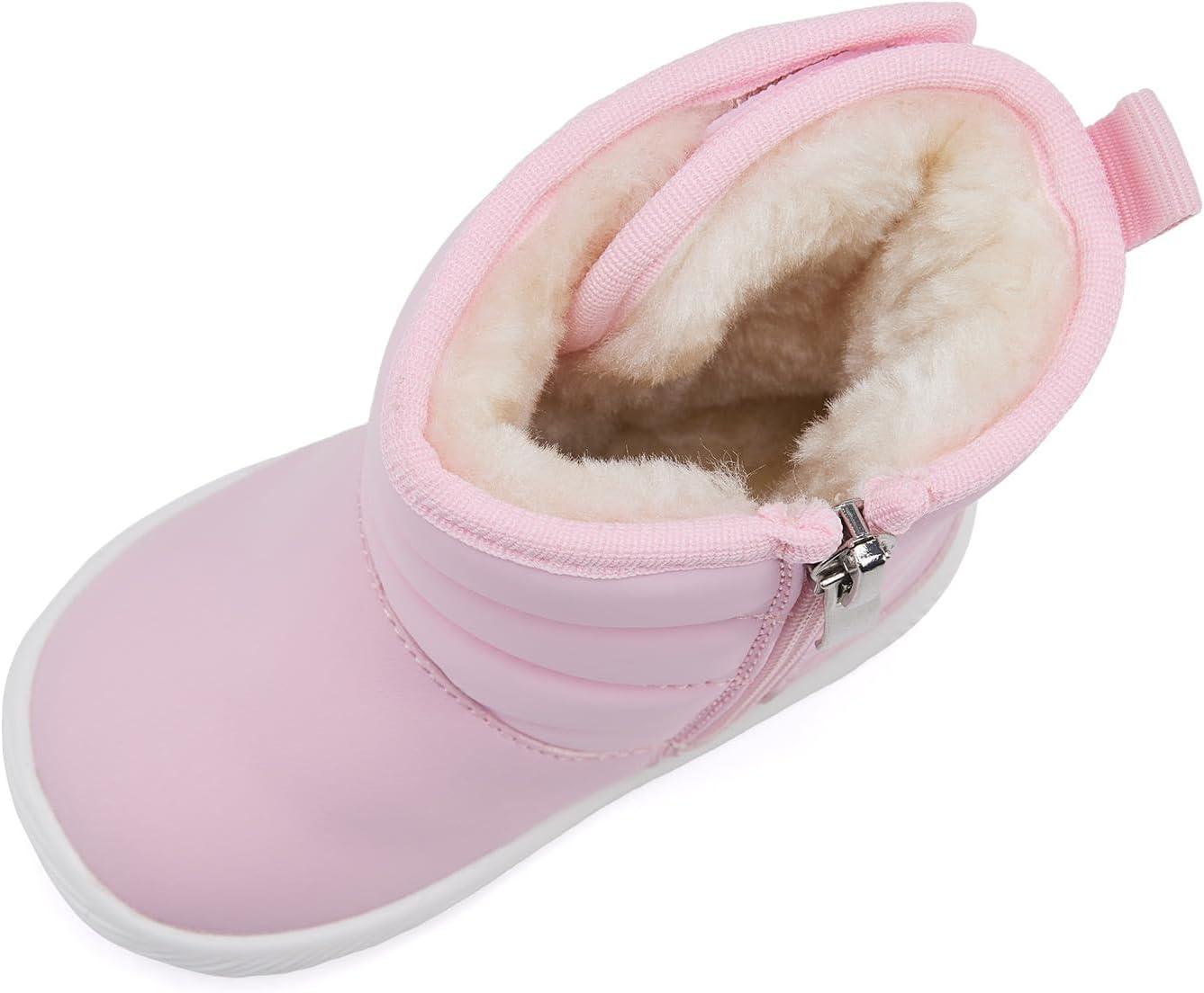 BMCiTYBM Baby Boy Girl Snow Boots Waterproof Winter Warm Booties Nonslip Lightweight Outdoor Shoes for First Walkers 6 9 12 18 24 Months(Infant/Toddler)(A2-pink)