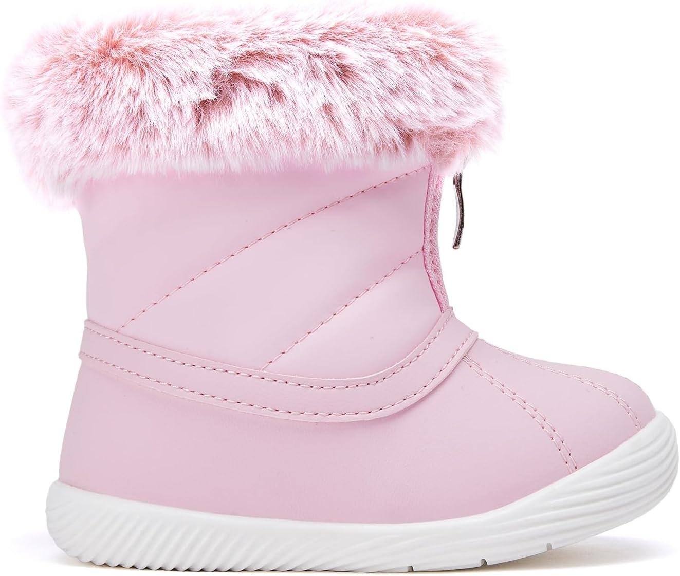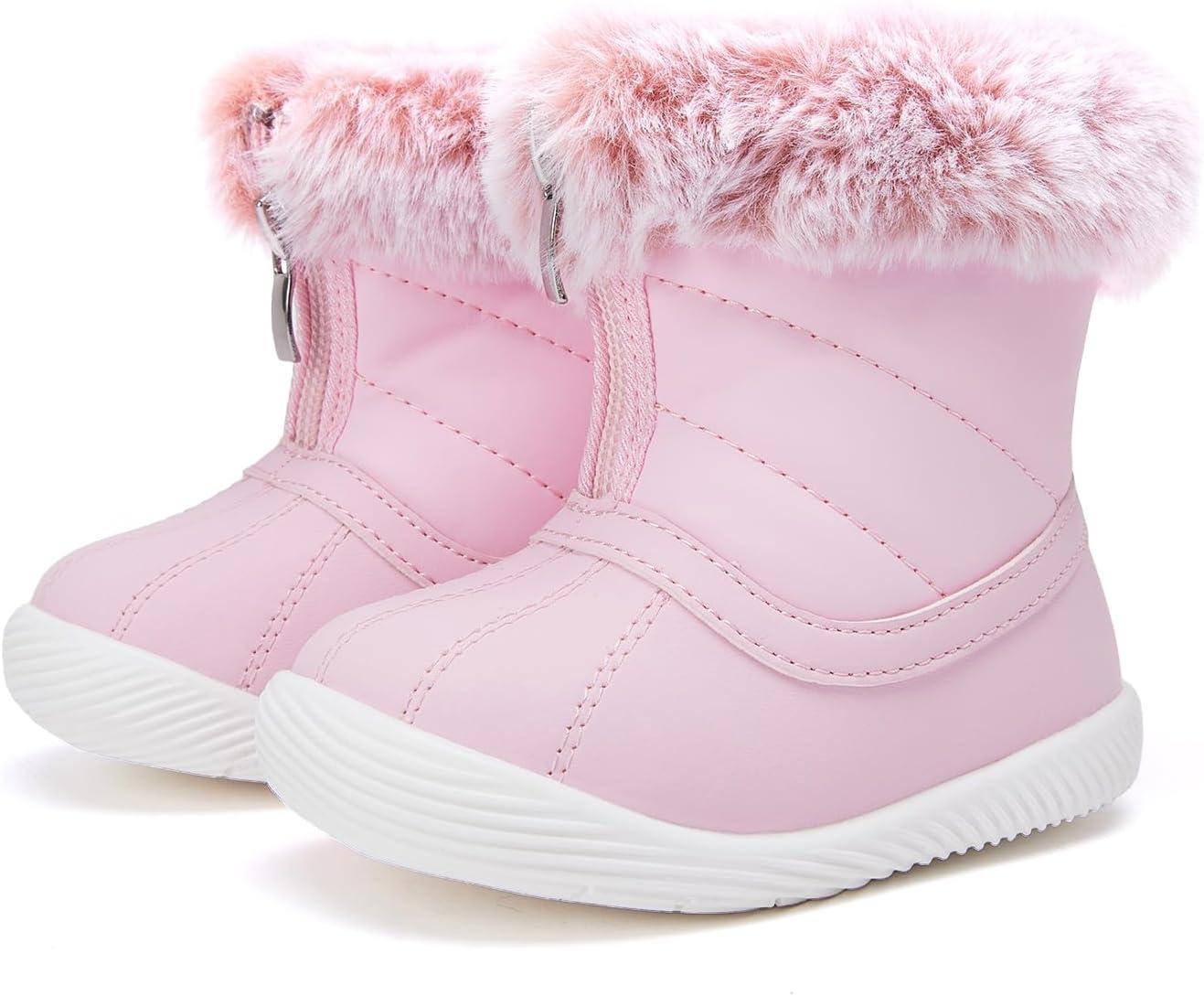 BMCiTYBM Baby Boy Girl Snow Boots Waterproof Winter Warm Booties Nonslip Lightweight Outdoor Shoes for First Walkers 6 9 12 18 24 Months(Infant/Toddler)(A3-pink)