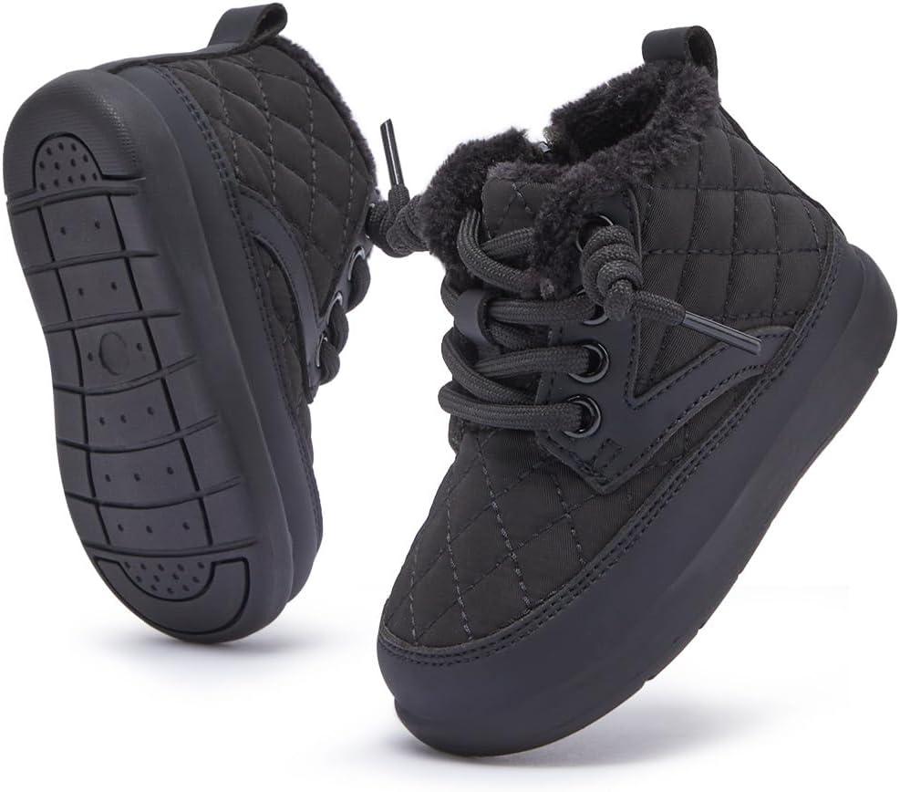 BMCiTYBM Baby Boy Girl Snow Boots Waterproof Winter Warm Booties Nonslip Lightweight Outdoor Shoes for First Walkers 6 9 12 18 24 Months(Infant/Toddler)(B-black)
