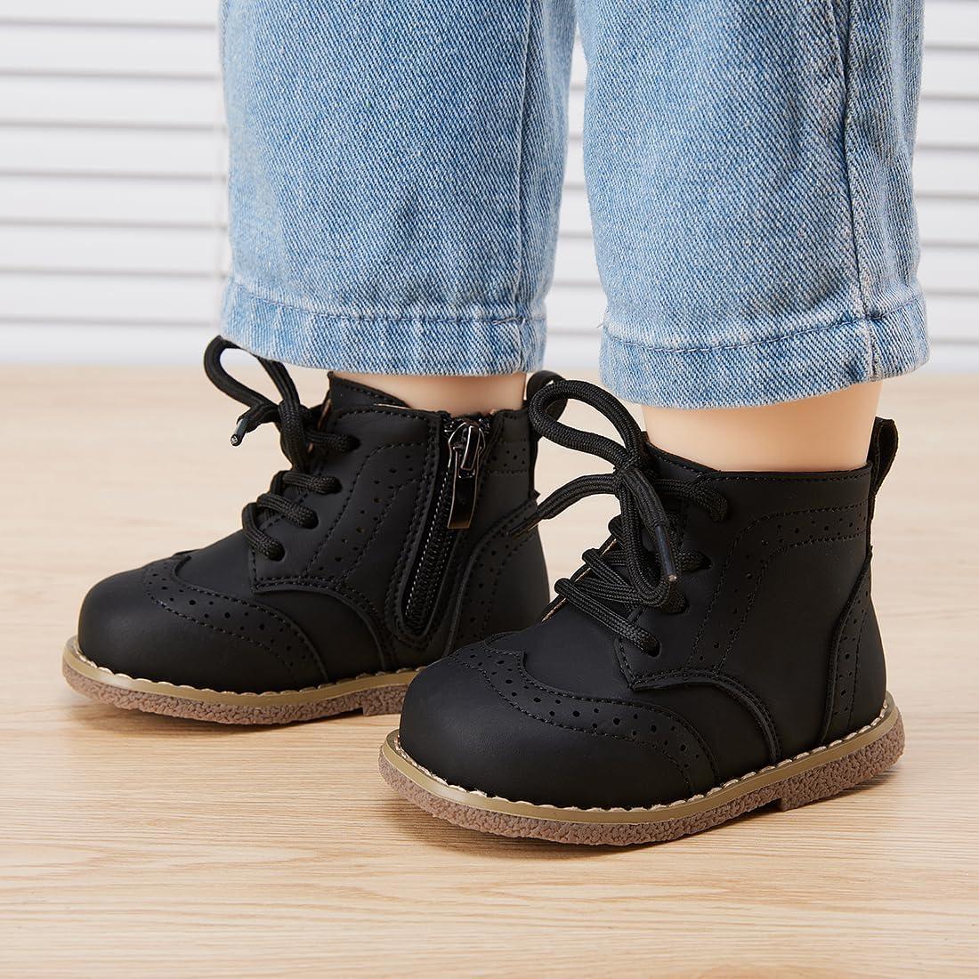 BMCiTYBM Baby Boys Girls Boots Infant Shoes First Walking Booties for All Seasons for 6 9 12 15 18 24 Months(7-black)