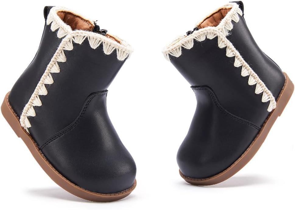 BMCiTYBM Baby Boys Girls Boots Infant Shoes First Walking Booties for All Seasons for 6 9 12 15 18 24 Months(31-black)