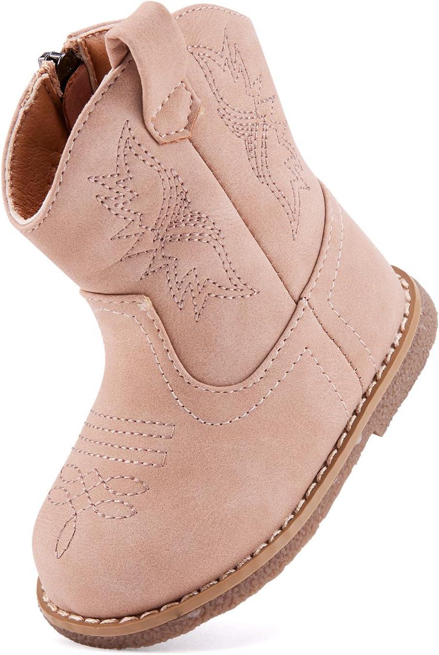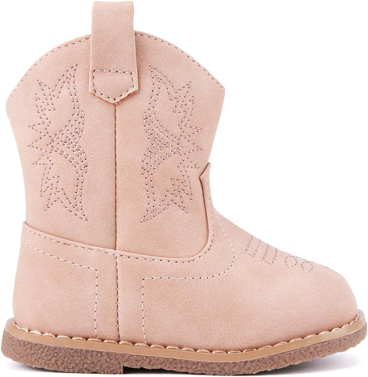 BMCiTYBM Baby Cowboy Cowgirl Boots Infant Western Boots Toddler Boys Girls Round Toe Riding Mid Calf Boots All Seasons for 6 9 12 18 24 Months(A-pink)