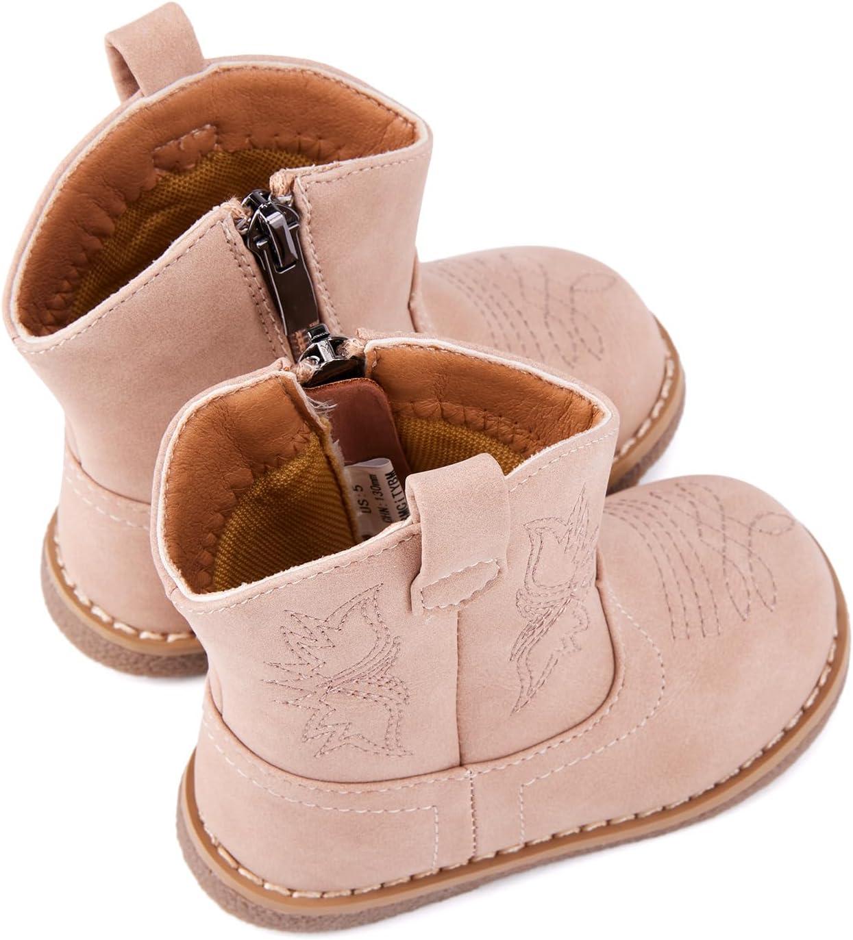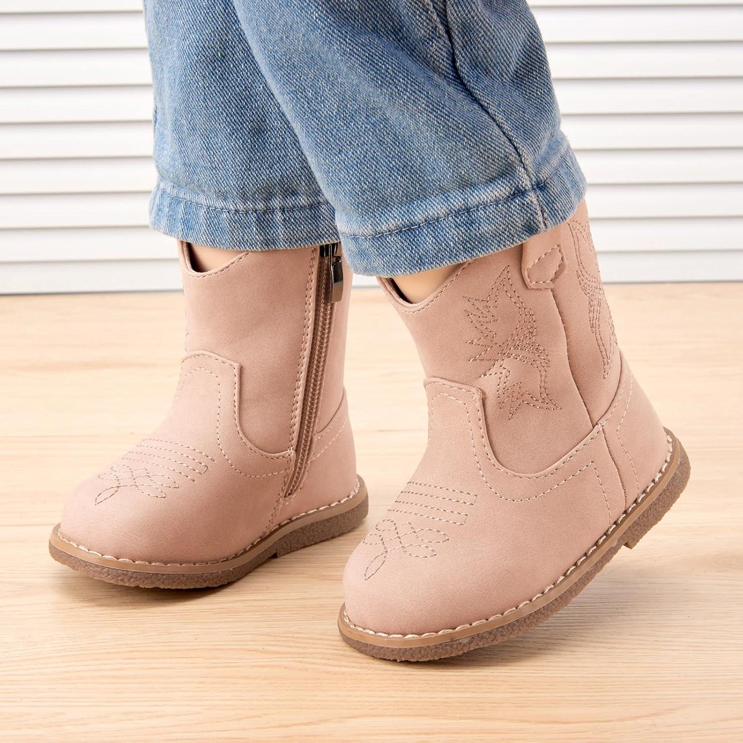 imageBMCiTYBM Baby Cowboy Cowgirl Boots Infant Western Boots Toddler Boys Girls Round Toe Riding Mid Calf Boots All Seasons for 6 9 12 18 24 MonthsApink