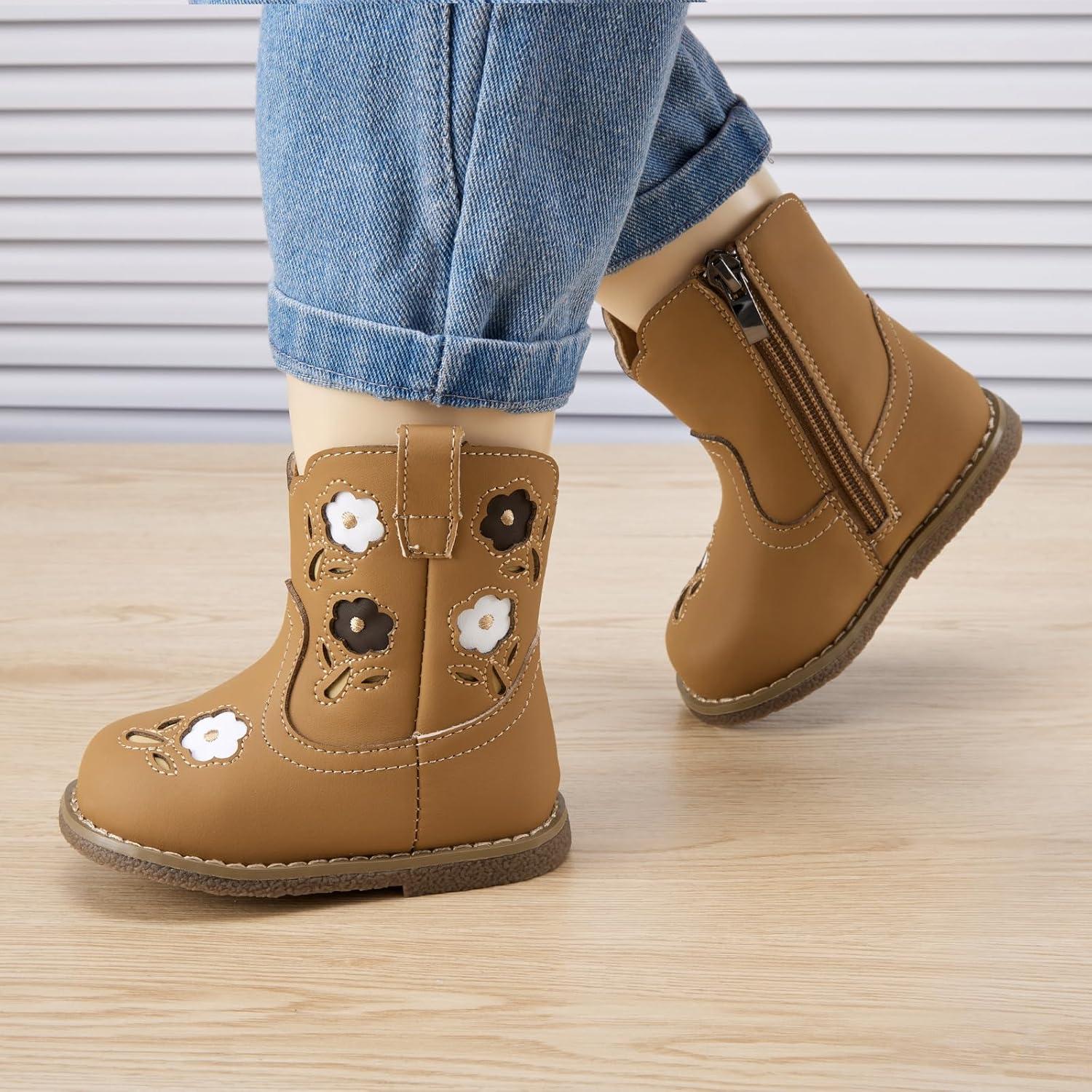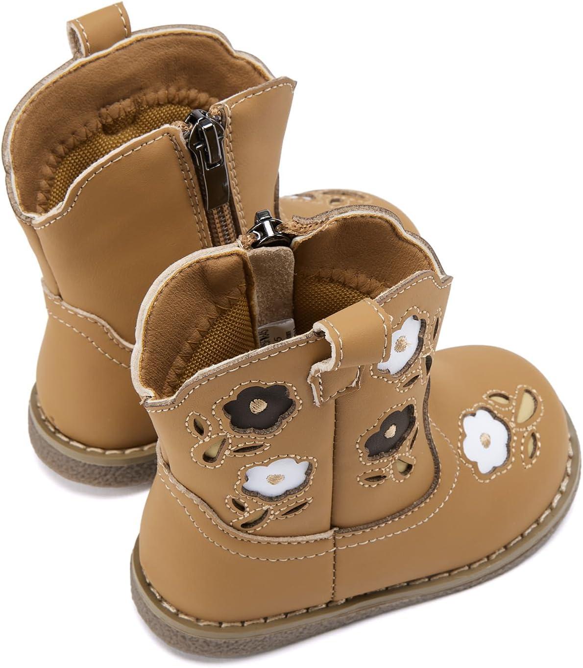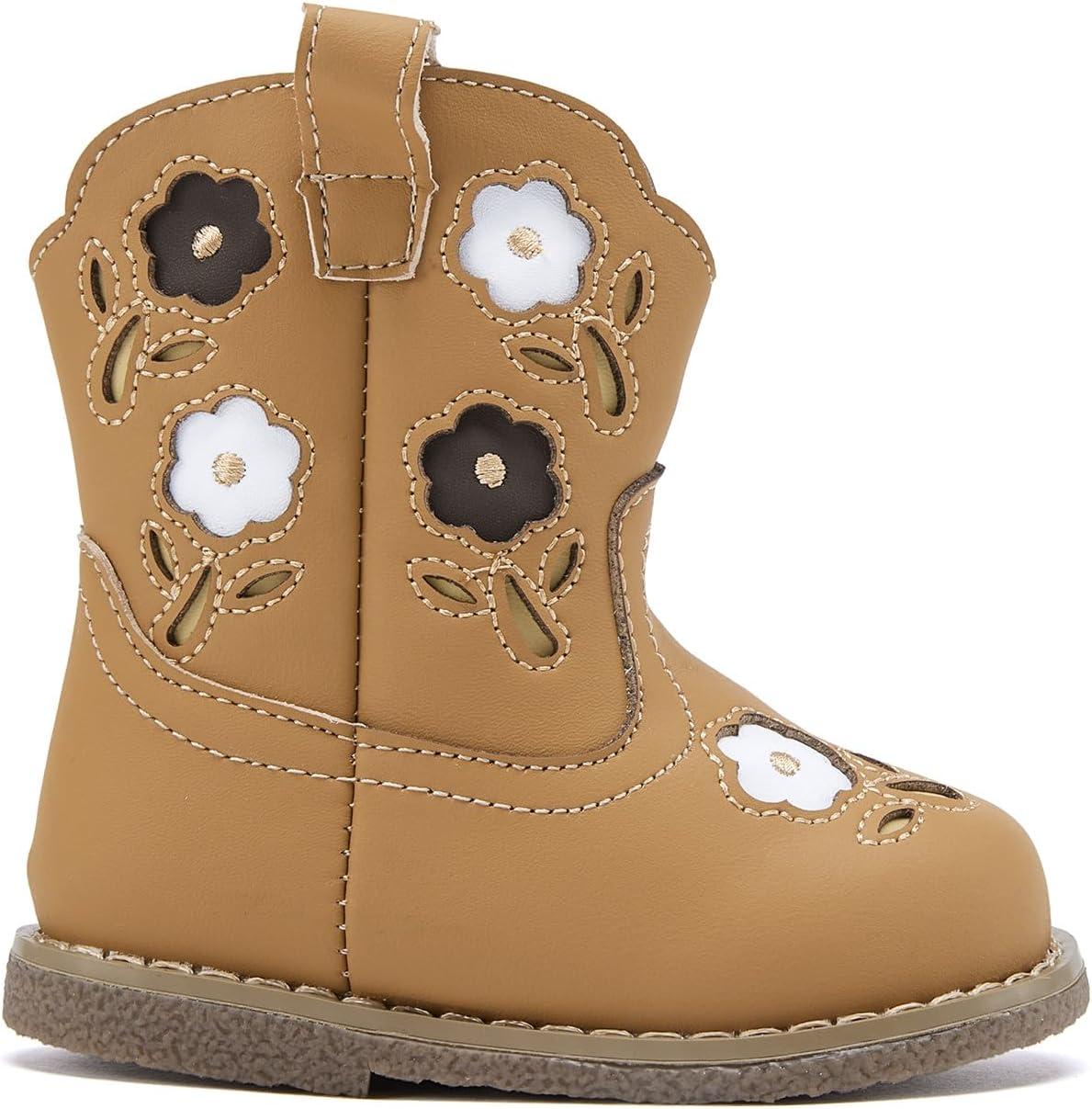 BMCiTYBM Baby Cowboy Cowgirl Boots Infant Western Boots Toddler Boys Girls Round Toe Riding Mid Calf Boots All Seasons for 6 9 12 18 24 Months(B1-brown)