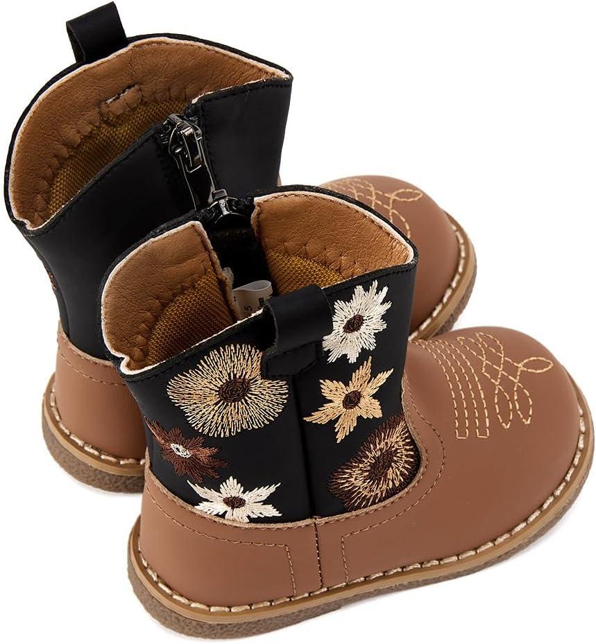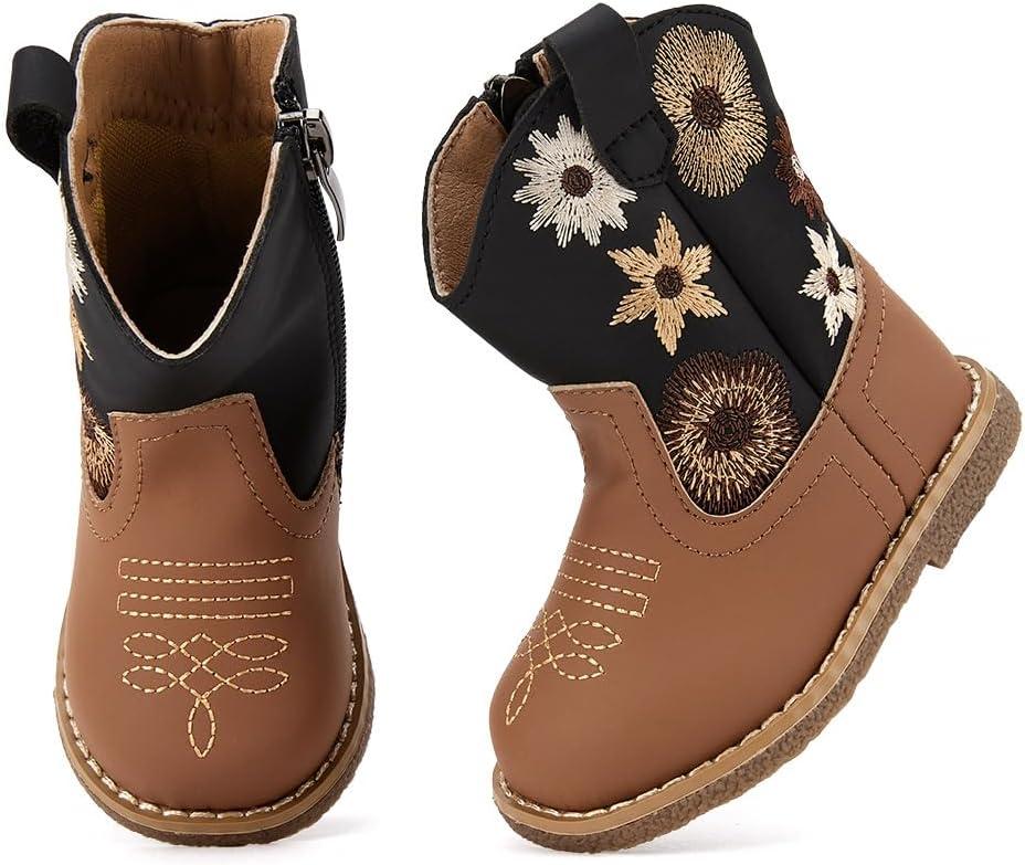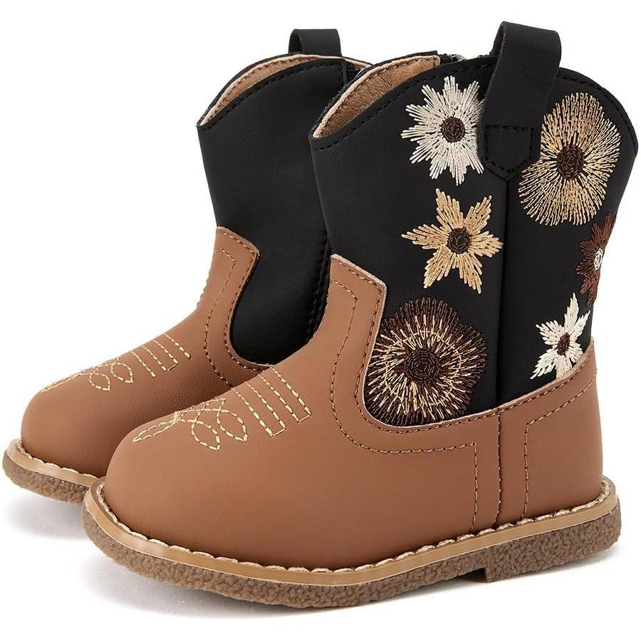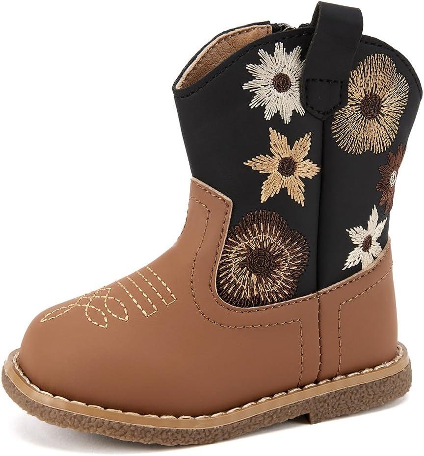 BMCiTYBM Baby Cowboy Cowgirl Boots Infant Western Shoes Boys Girls Round Toe Boots All Seasons 6-24 Months(A-black/Brown)