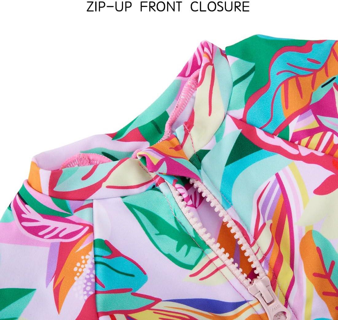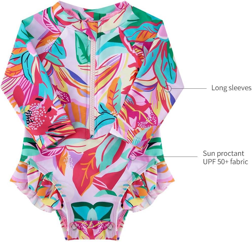 BMCiTYBM Baby Girls Swimsuits Long Sleeve Zipper One Piece UPF 50+ Sun Protection Swimwear Rash Guard(Rose)