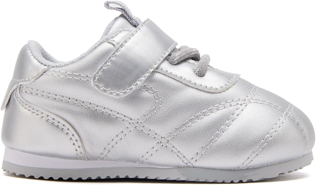 BMCiTYBM Baby Shoes Infant Boy Girl First Walker Shoes Toddler Walking Shoes Lightweight Non-Slip Sneakers for 6 9 12 18 24 Months(B1-silver)