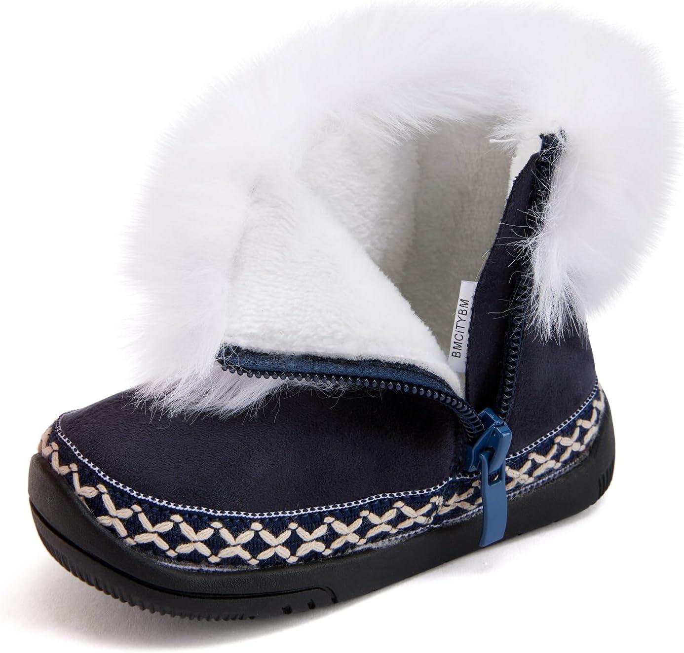 BMCiTYBM Baby Snow Boots Toddler Boy Girl Waterproof Winter Warm Booties Nonslip Lightweight Outdoor Shoes for First Walkers (Infant/Toddler)(A-white)