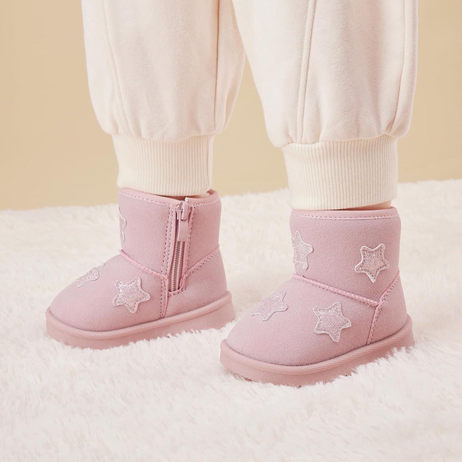 BMCiTYBM Baby Snow Boots Infant Boy Girl Winter Boots Nonslip Lightweight Outdoor Warm Shoes for Cold Weather 6 9 12 18 24 Months(Infant/Toddler)(C1-pink)