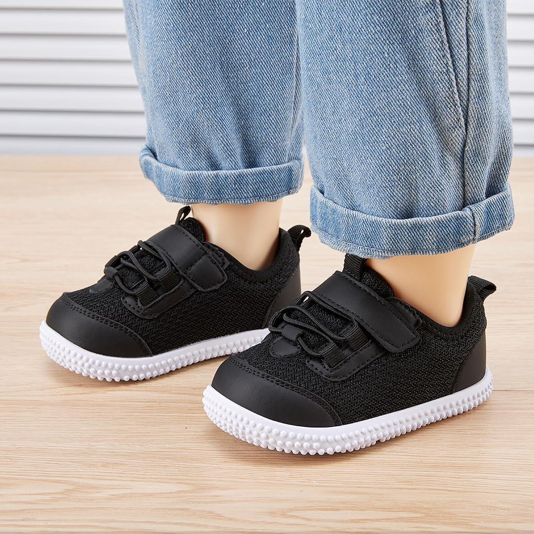 BMCiTYBM Baby Walking Sneakers Mesh Barefoot Boys Girls Breathable Shoes(1-black)