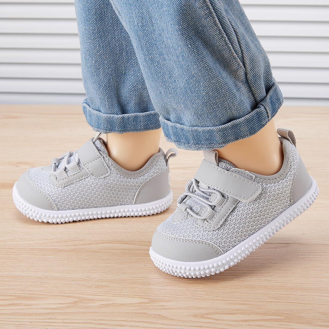 BMCiTYBM Baby Walking Sneakers Mesh Barefoot Boys Girls Breathable Shoes(1-grey)