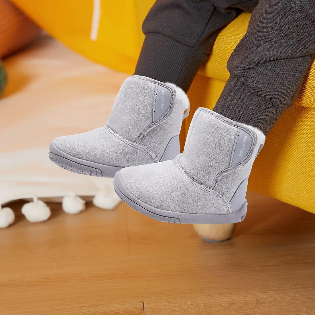 BMCiTYBM Girls Boys Snow Boots Warm Winter Fur Lined Baby Shoes (Infant/Toddler/Little Kid)(1-light Grey)