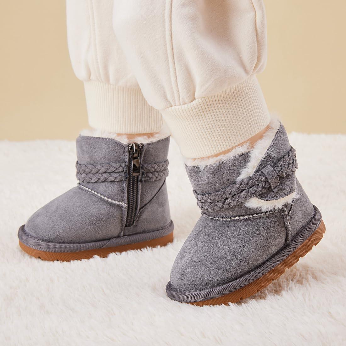 BMCiTYBM Girls Boys Snow Boots Warm Winter Fur Lined Baby Shoes (Infant/Toddler/Little Kid)(98-grey)