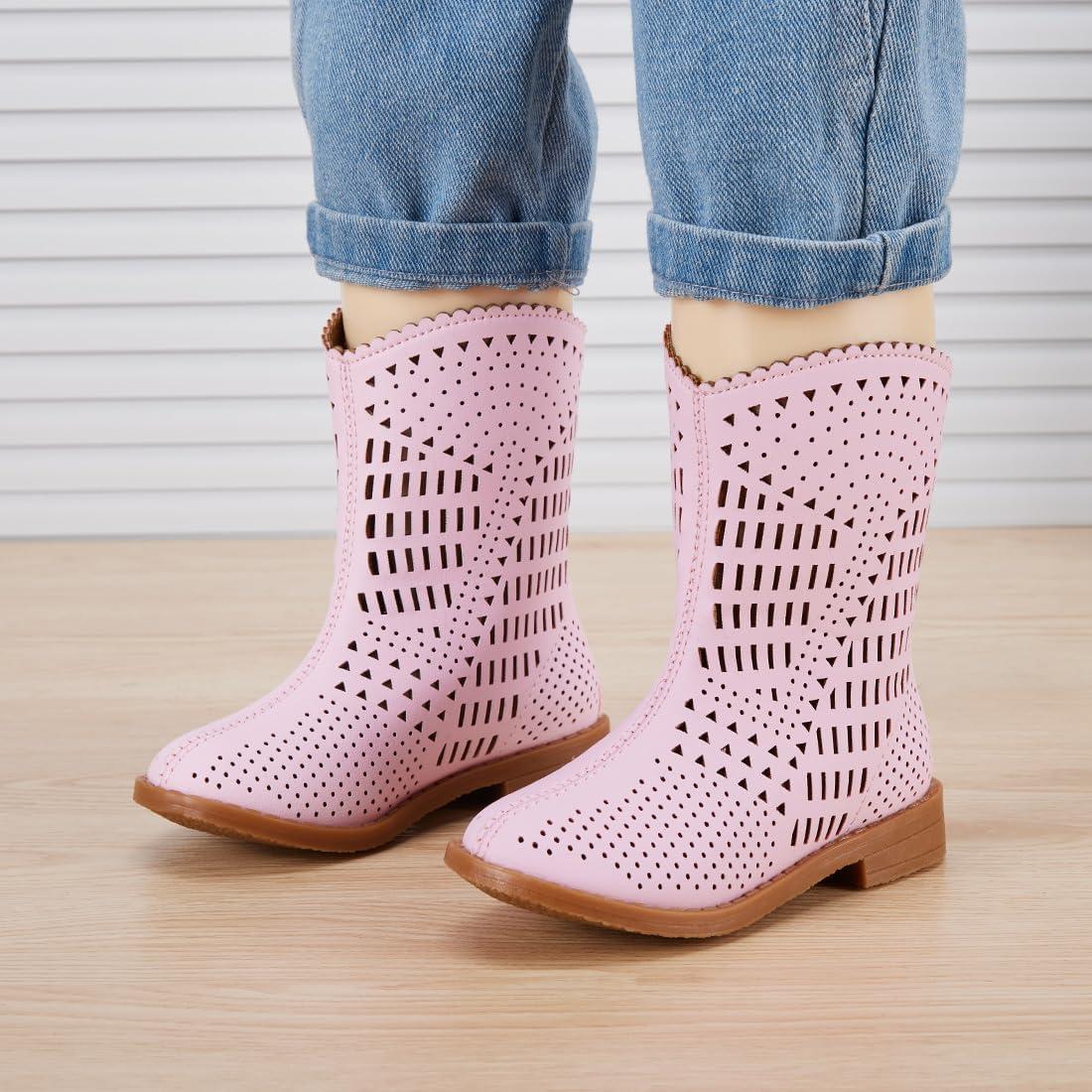 BMCiTYBM Girls Cowgirl Boots Unisex-Child Mid Calf Toddler Cowboy Boots Little Kids Western Boots Round Toe All Seasons Shoes