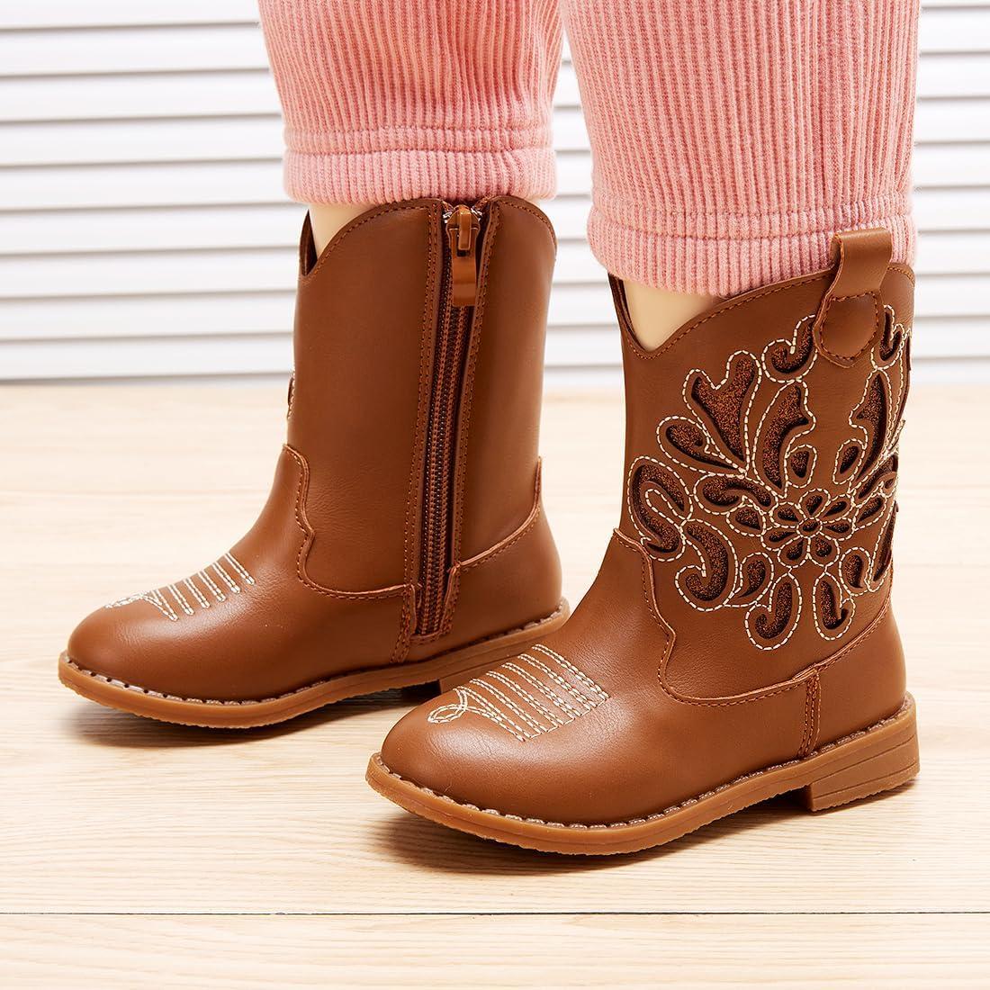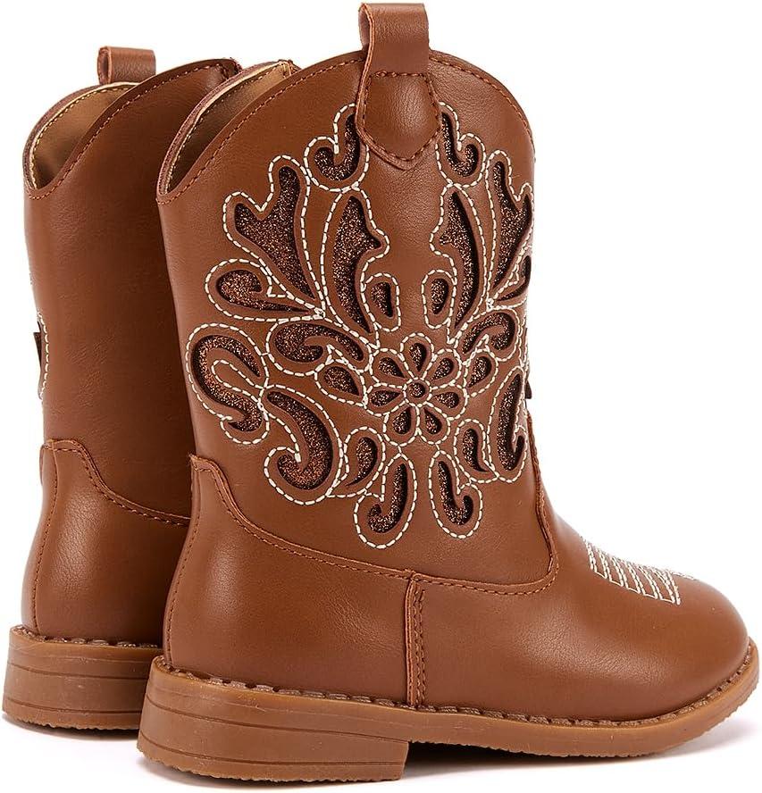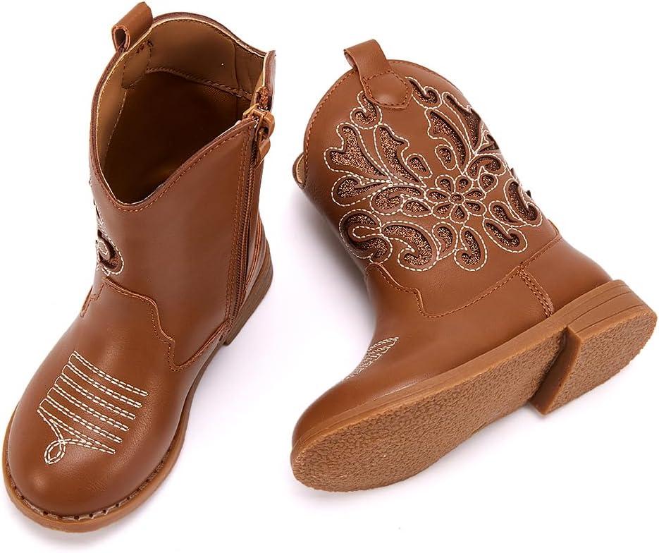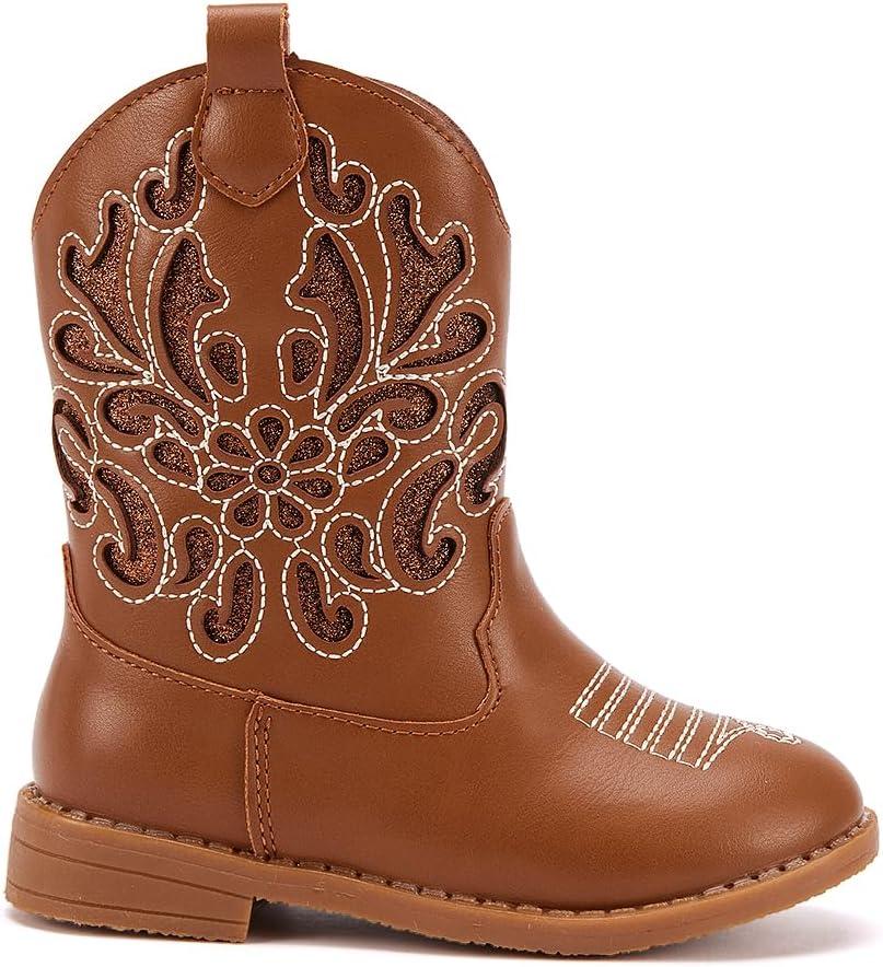 BMCiTYBM Girls Cowgirl Boots Unisex-Child Mid Calf Toddler Cowboy Boots Little Kids Western Boots Round Toe All Seasons Shoes