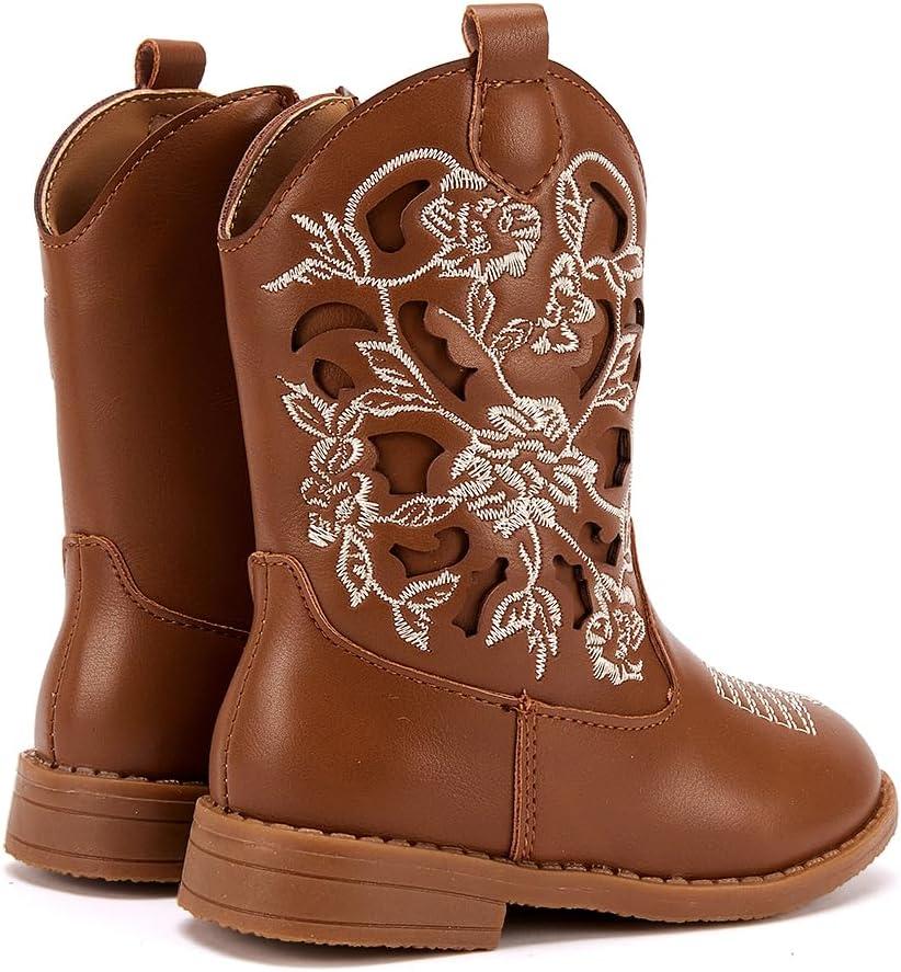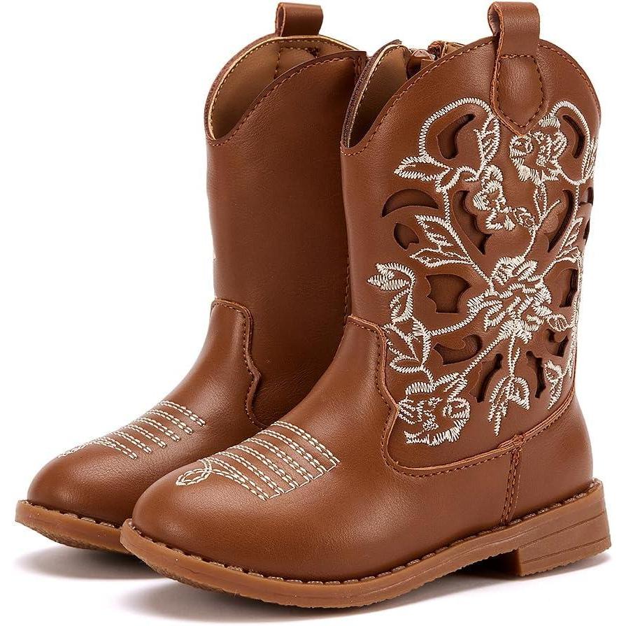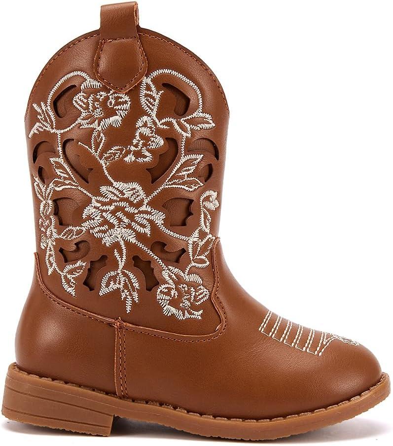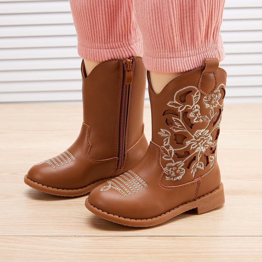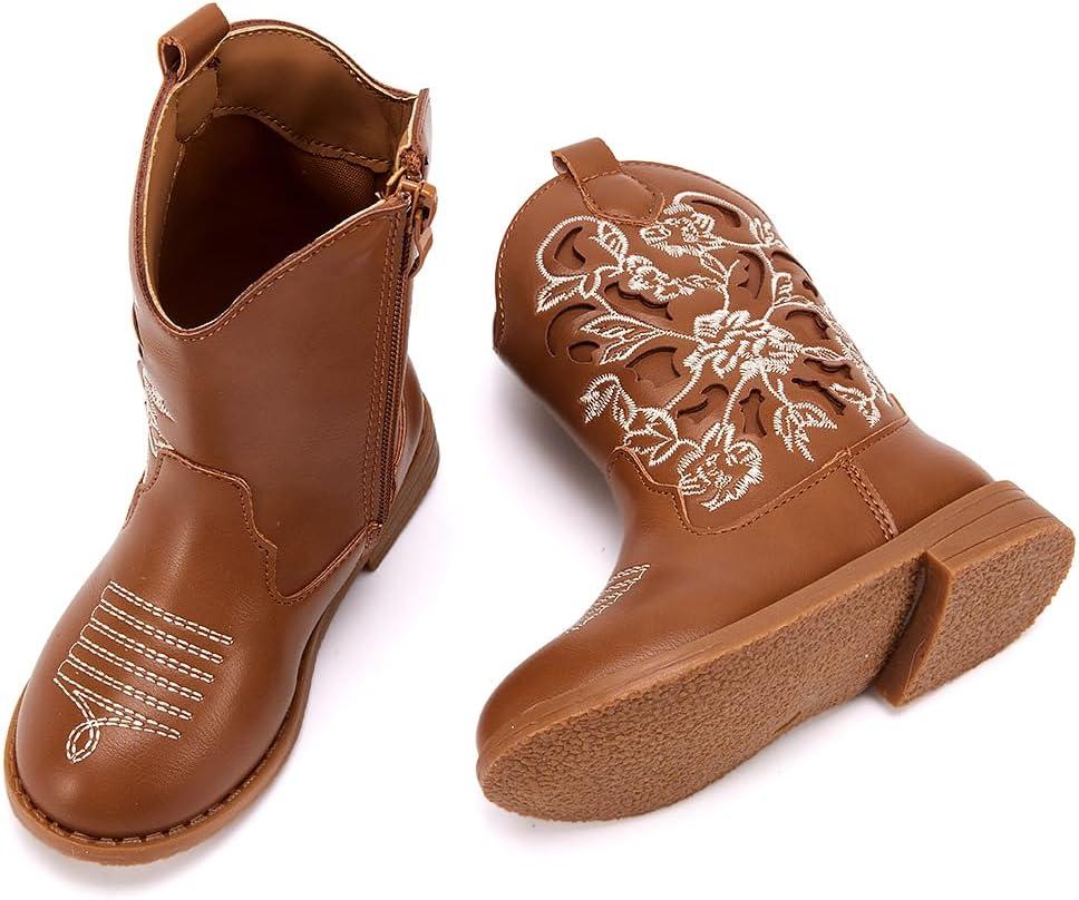 BMCiTYBM Girls Cowgirl Boots Unisex-Child Mid Calf Toddler Cowboy Boots Little Kids Western Boots Round Toe All Seasons Shoes