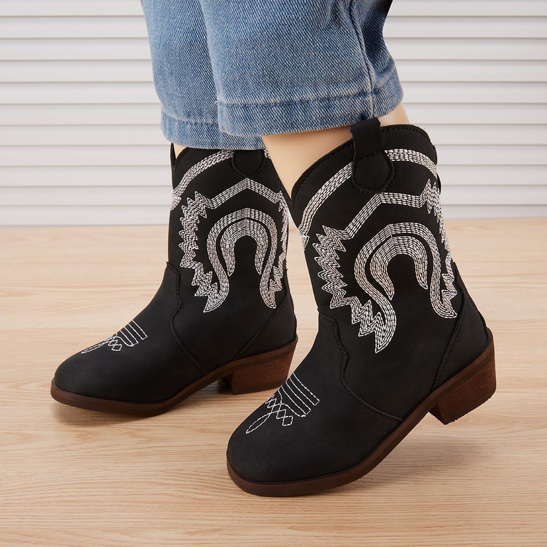 BMCiTYBM Girls Cowgirl Boots Unisex-Child Mid Calf Toddler Cowboy Boots Little Kids Western Boots Round Toe All Seasons Shoes