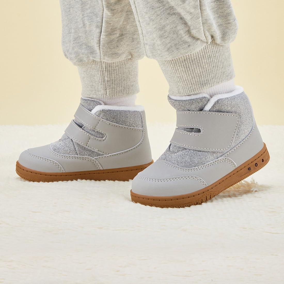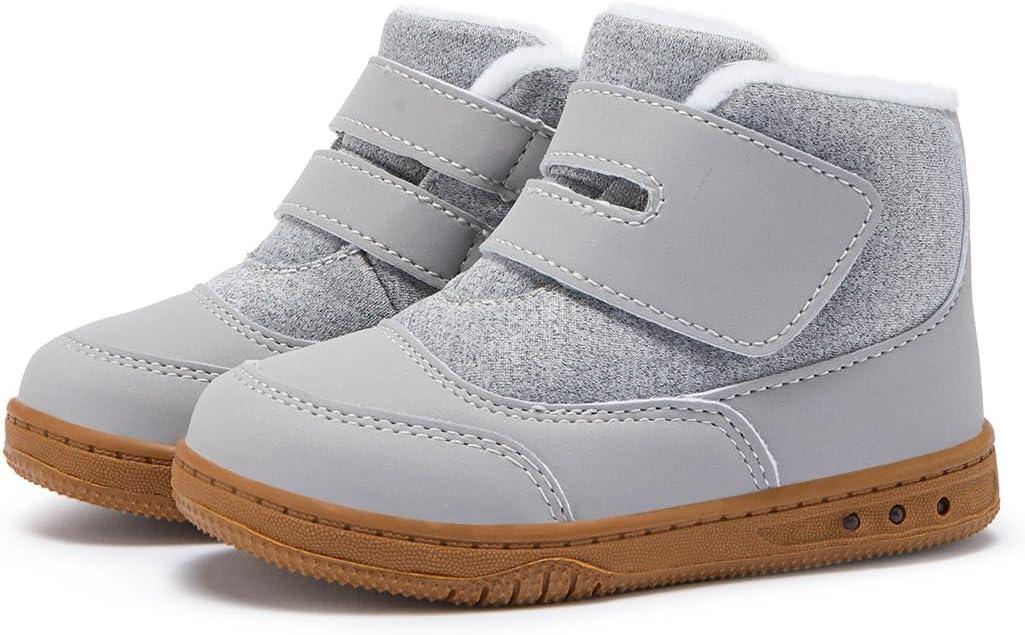 BMCiTYBM Kids Snow Boots Boys Girls Toddler Winter Waterproof Shoes Cold Weather Outdoor Lightweight (Toddler/Little Kids/Big Kids)(4a-grey)