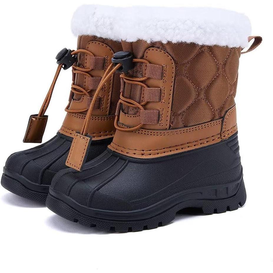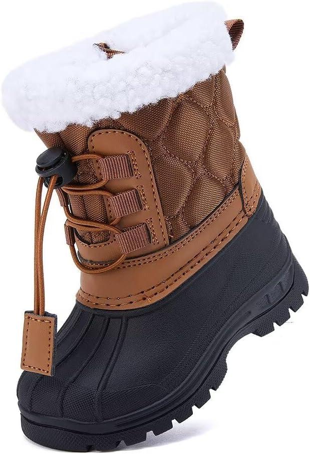 BMCiTYBM Kids Snow Boots Boys Girls Toddler Winter Waterproof Shoes Cold Weather Outdoor Lightweight (Toddler/Little Kids/Big Kids)(Dark Brown)