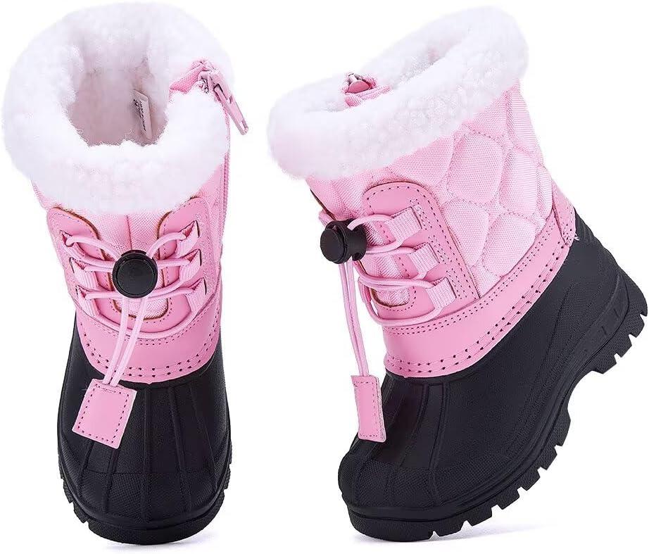 BMCiTYBM Kids Snow Boots Boys Girls Toddler Winter Waterproof Shoes Cold Weather Outdoor Lightweight (Toddler/Little Kids/Big Kids)(Dark Pink)