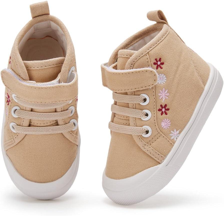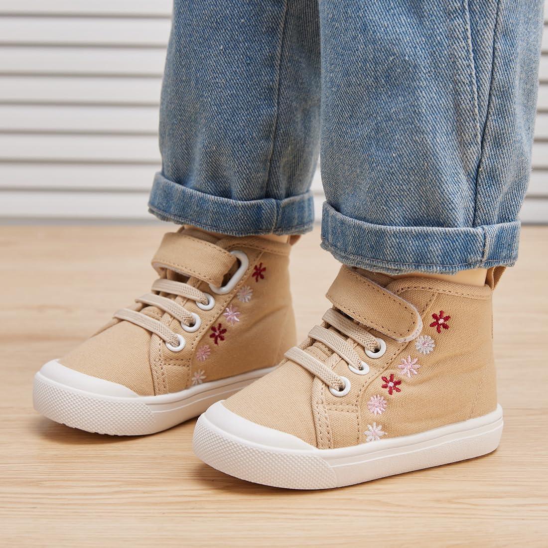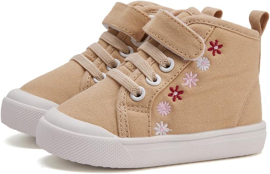BMCiTYBM Toddler Baby Canvas Shoes Boys Girls Walking Sneakers(Flower-camel)