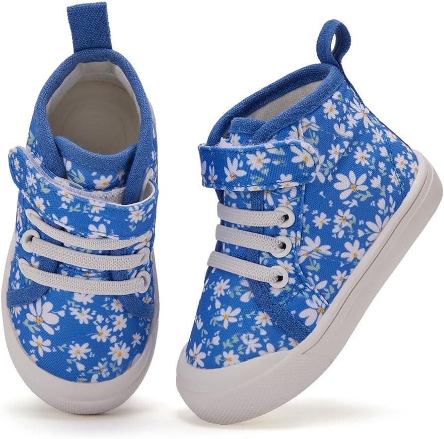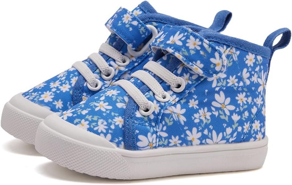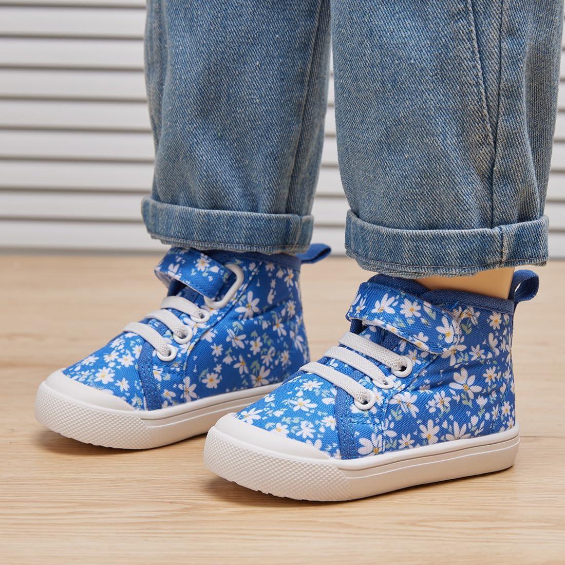 BMCiTYBM Toddler Baby Canvas Shoes Boys Girls Walking Sneakers(Flower-navy)
