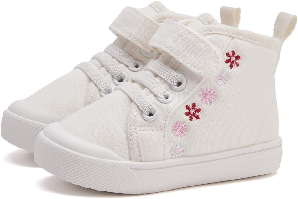 BMCiTYBM Toddler Baby Canvas Shoes Boys Girls Walking Sneakers(Flower-white)