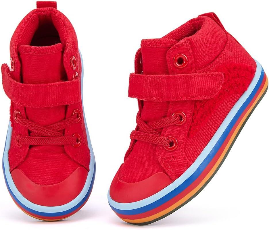 BMCiTYBM Toddler Baby Canvas Shoes Boys Girls Walking Sneakers(Multicoloured Red)