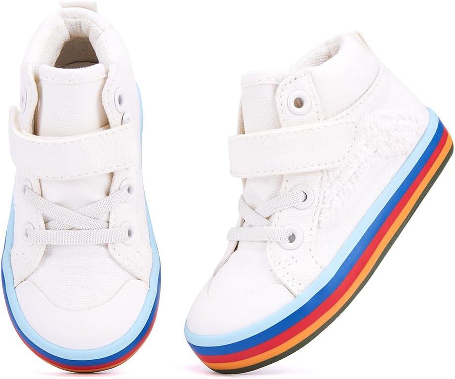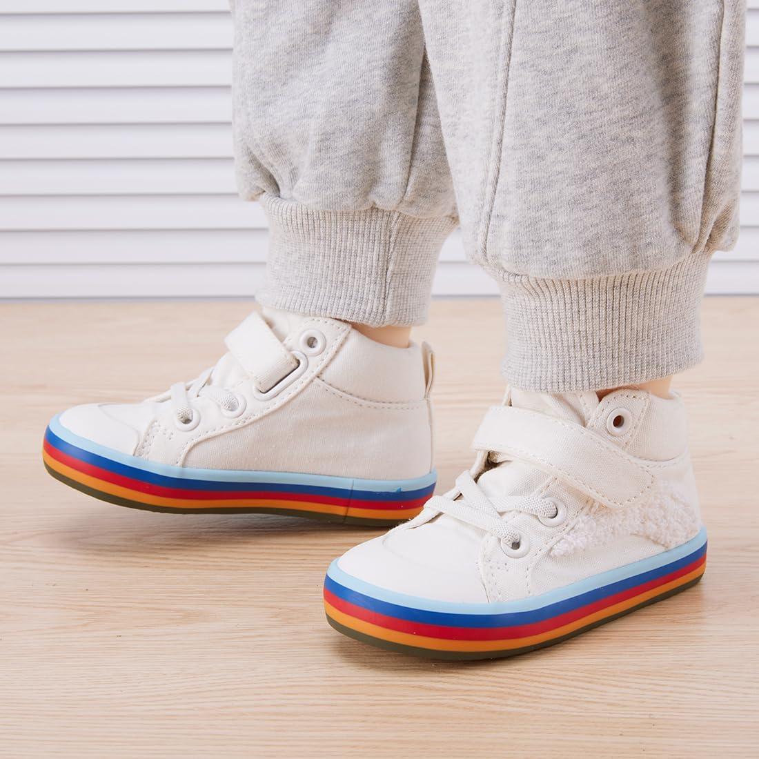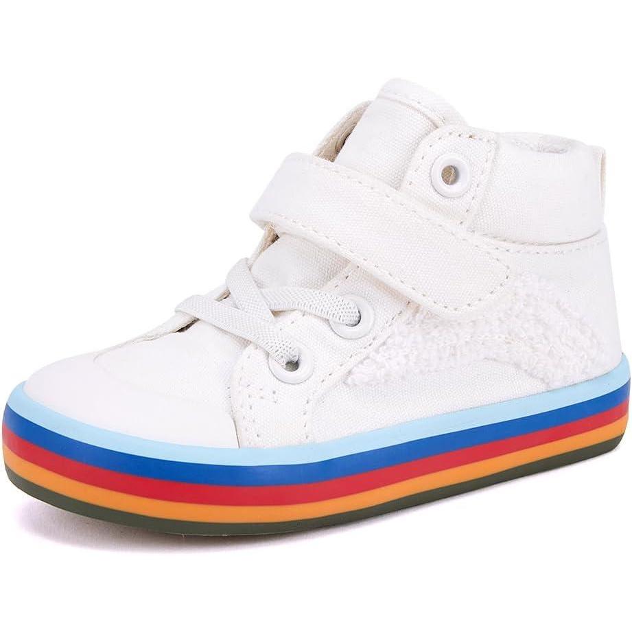 BMCiTYBM Toddler Baby Canvas Shoes Boys Girls Walking Sneakers(Multicoloured White)