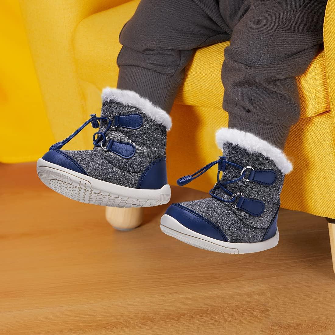 BMCiTYBM Toddler Baby Snow Boots Winter Shoes Boys Girls Cold Weather Baby Faux Fur Shoes(1-navy)