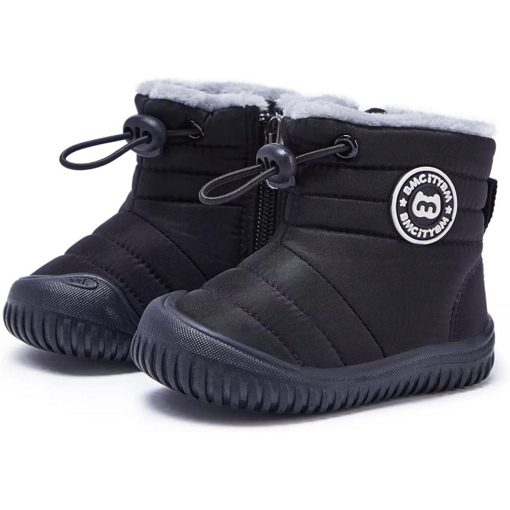 BMCiTYBM Toddler Baby Snow Boots Winter Shoes Boys Girls Cold Weather Baby Faux Fur Shoes(Dark Black)
