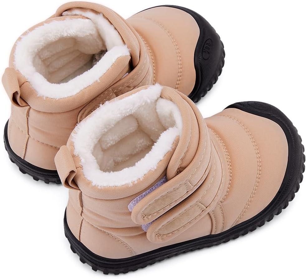 BMCiTYBM Toddler Baby Snow Boots Winter Shoes Boys Girls Cold Weather Baby Faux Fur Shoes(Two Strap Camel)