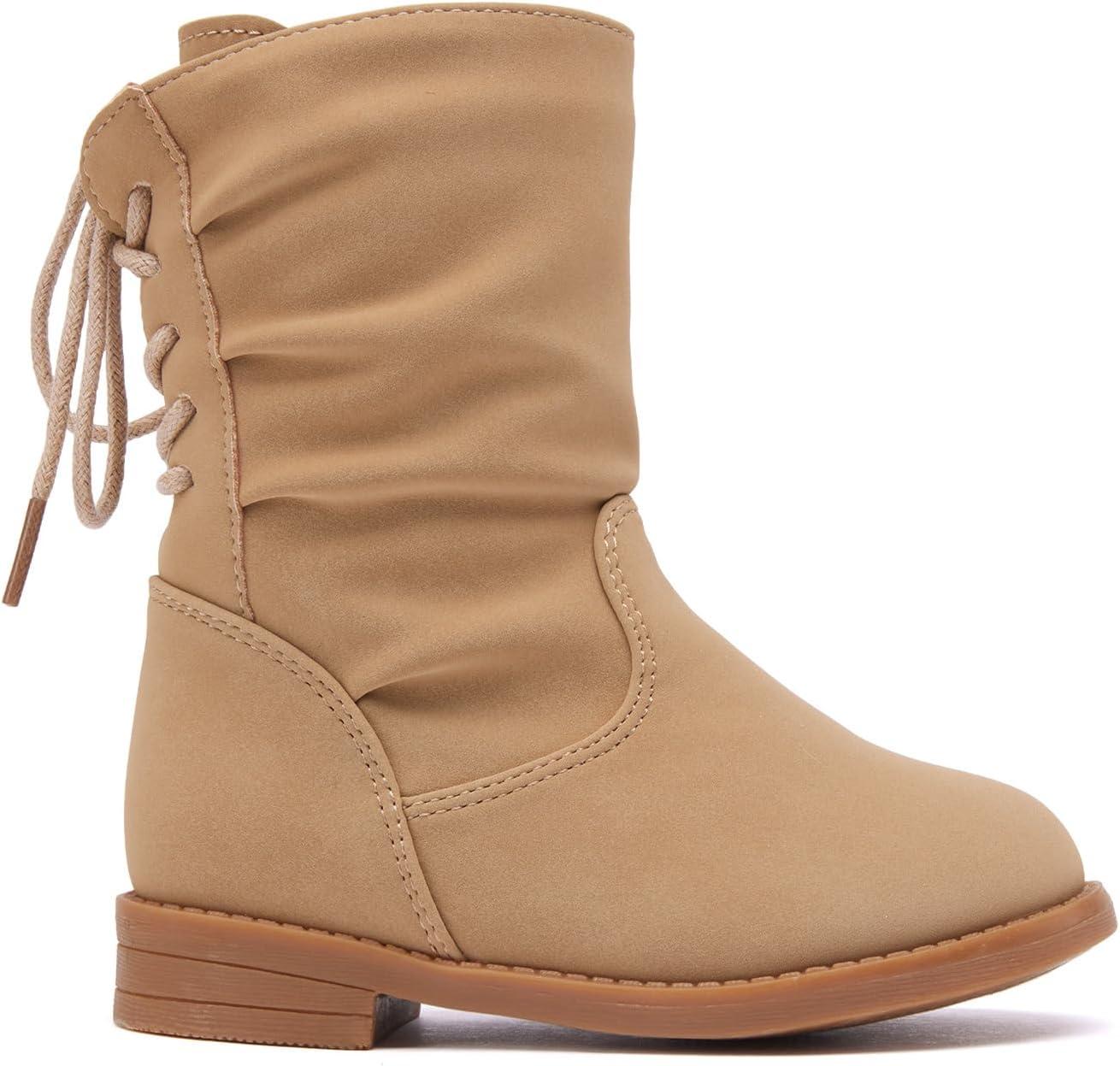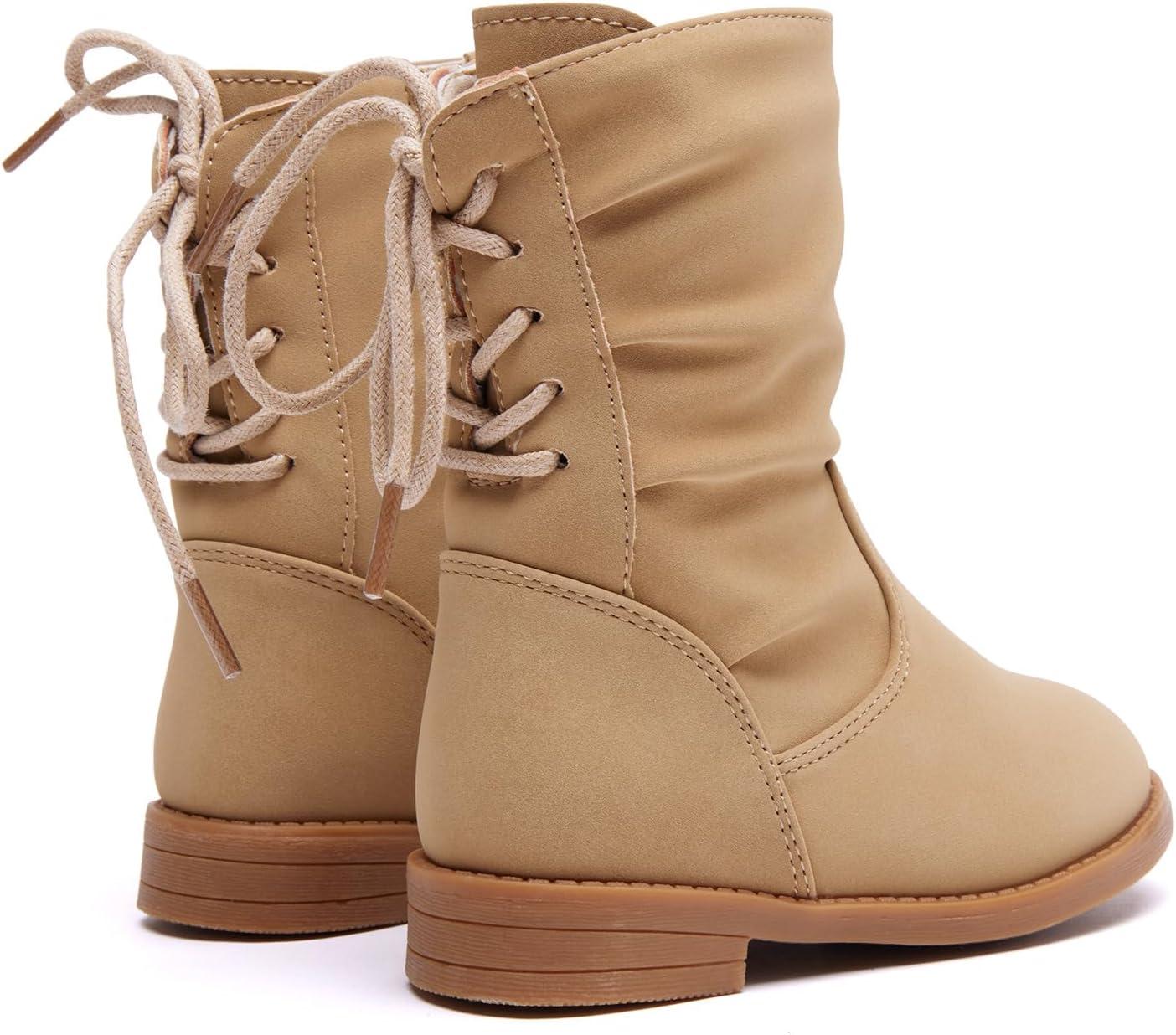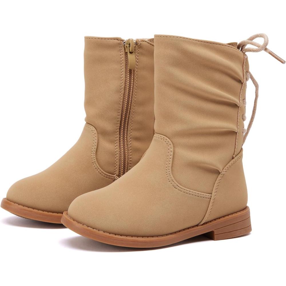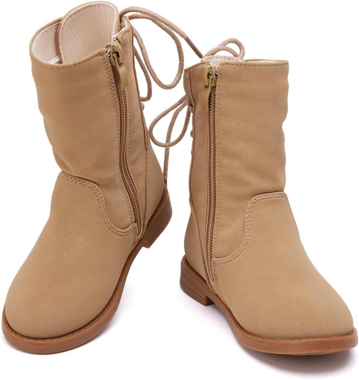 BMCiTYBM Toddler Boots Girls Fashion Ridding Booties Mid Calf Side Zipper Shoes for All Seasons(Toddler/Little Kid)(A-khaki)
