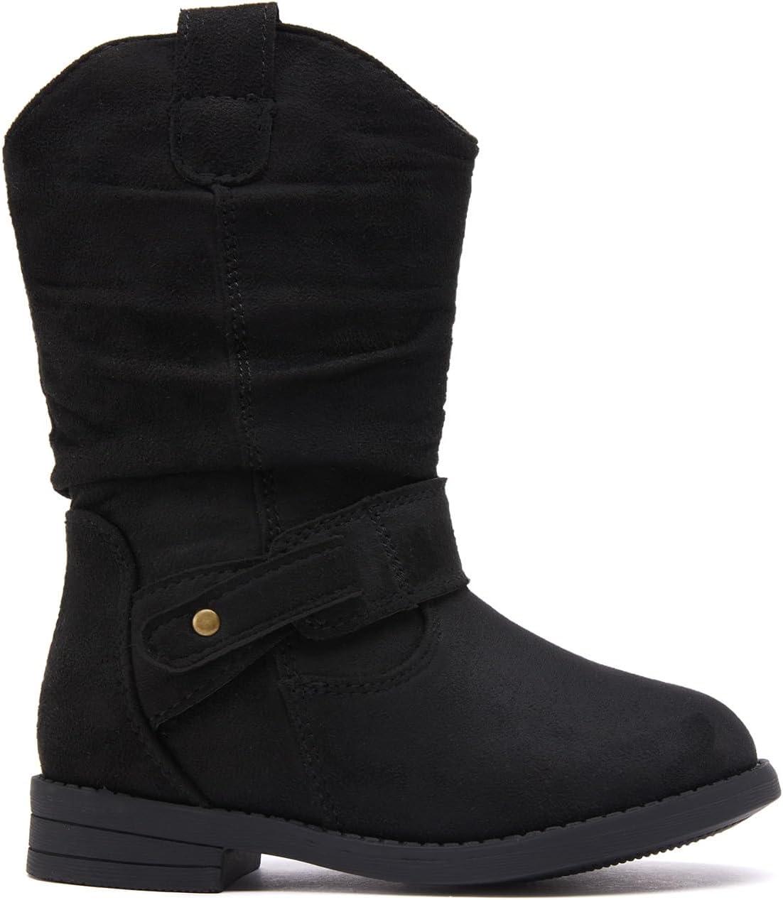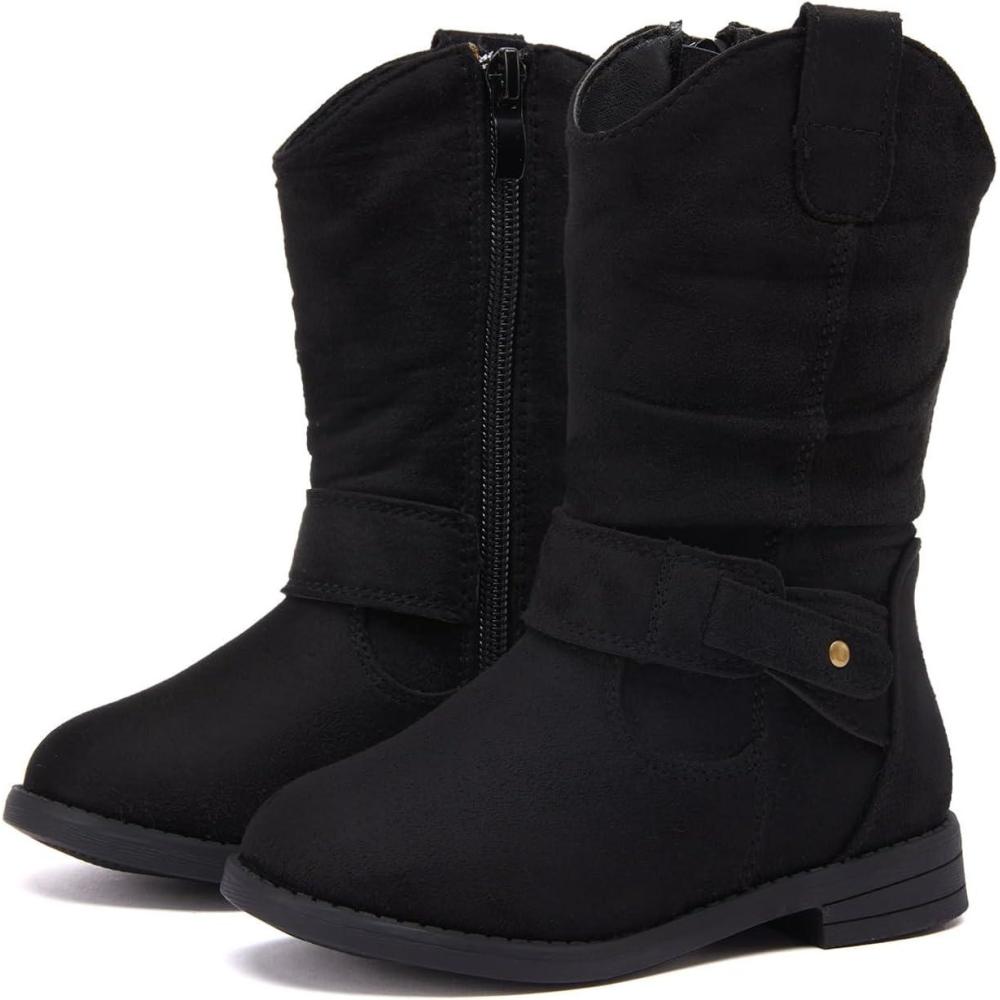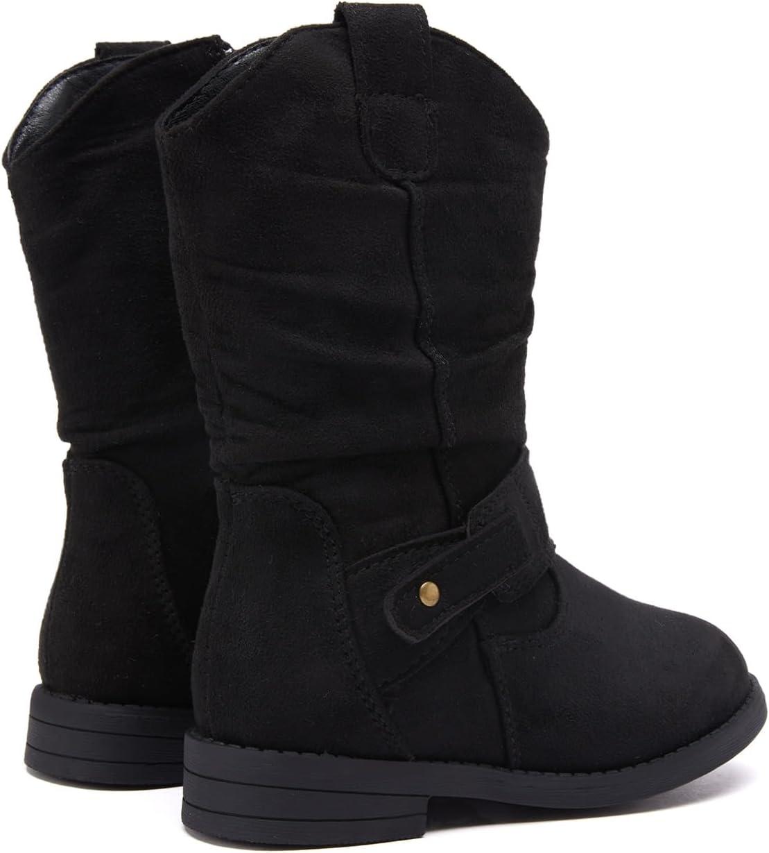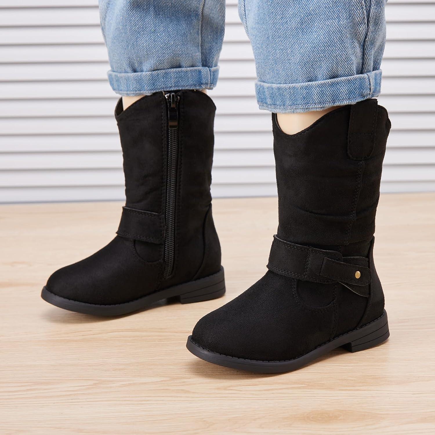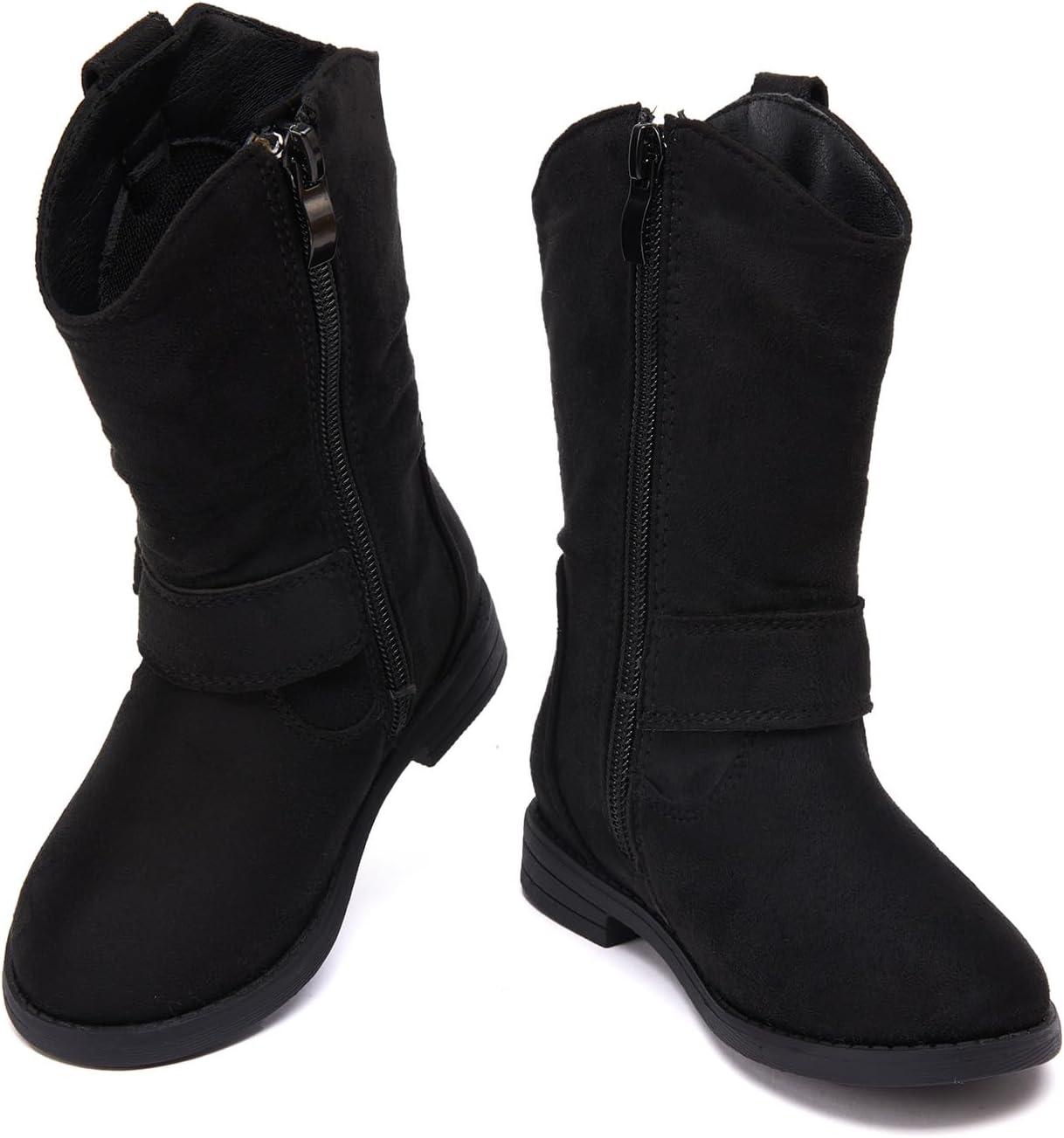BMCiTYBM Toddler Boots Girls Fashion Ridding Booties Mid Calf Side Zipper Shoes for All Seasons(Toddler/Little Kid)(B-black)