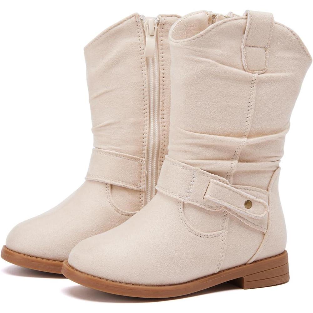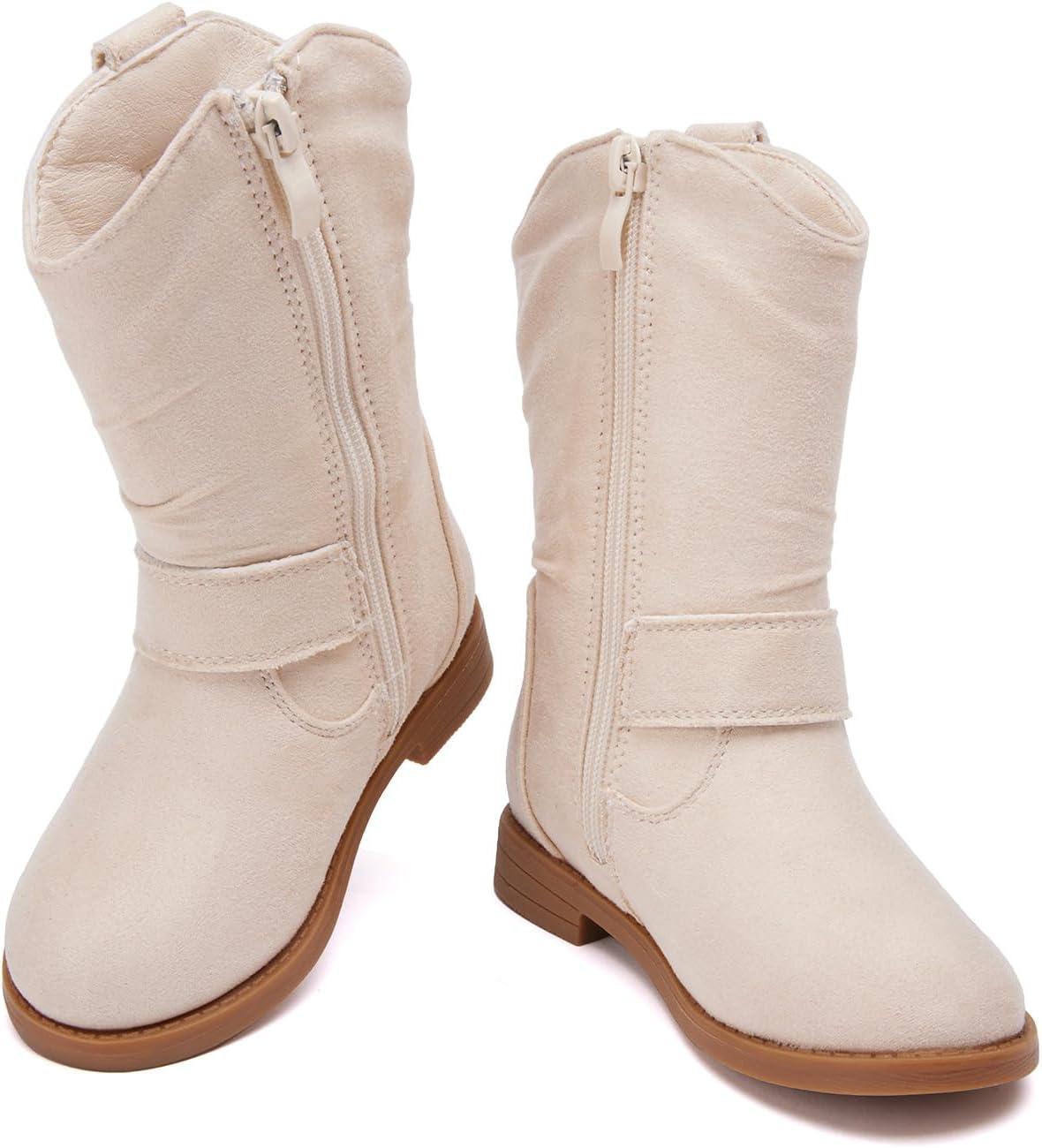 BMCiTYBM Toddler Boots Girls Fashion Ridding Booties Mid Calf Side Zipper Shoes for All Seasons(Toddler/Little Kid)(B-camel)