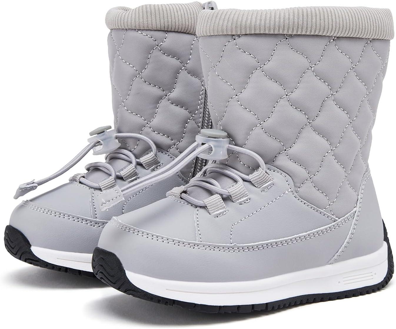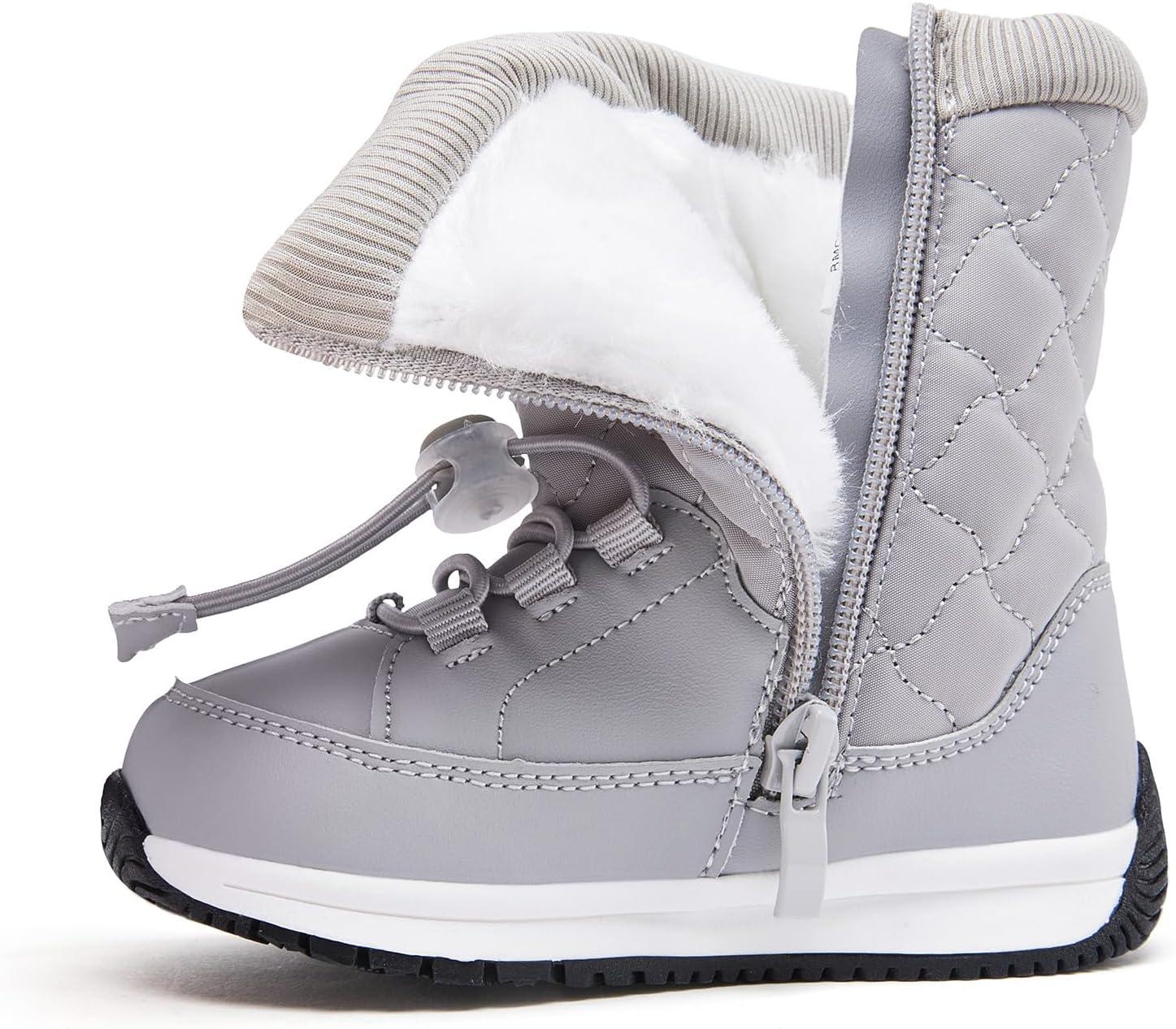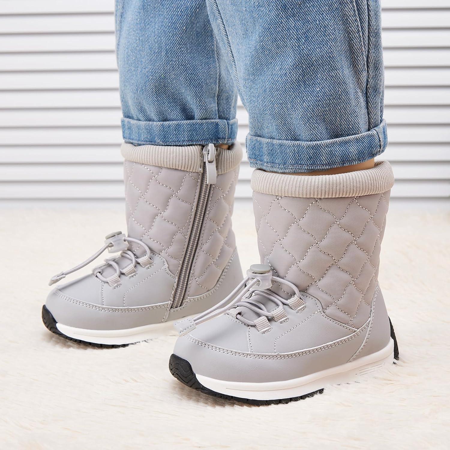 BMCiTYBM Toddler Boy Girl Snow Boots Waterproof Winter Warm Booties Nonslip Lightweight Outdoor Walking Shoes for Cold Weatehr(A-grey)