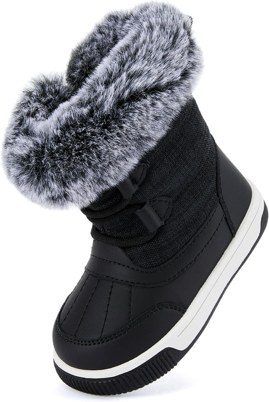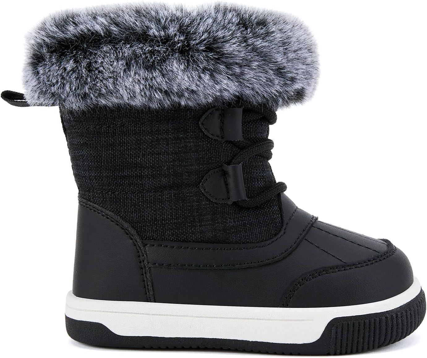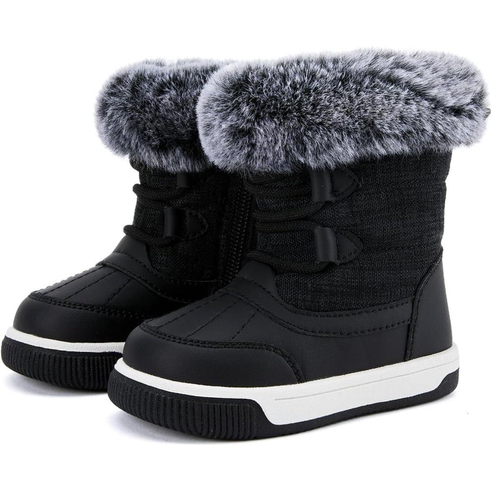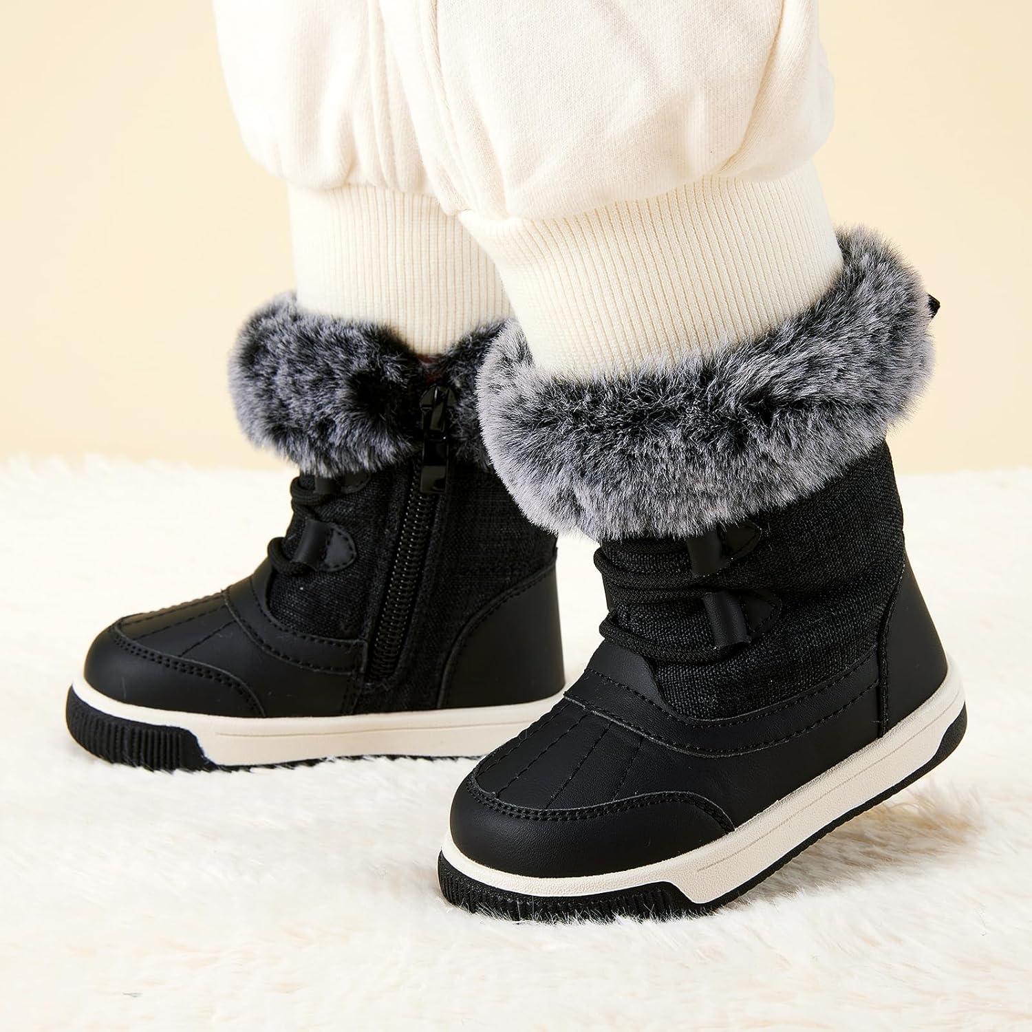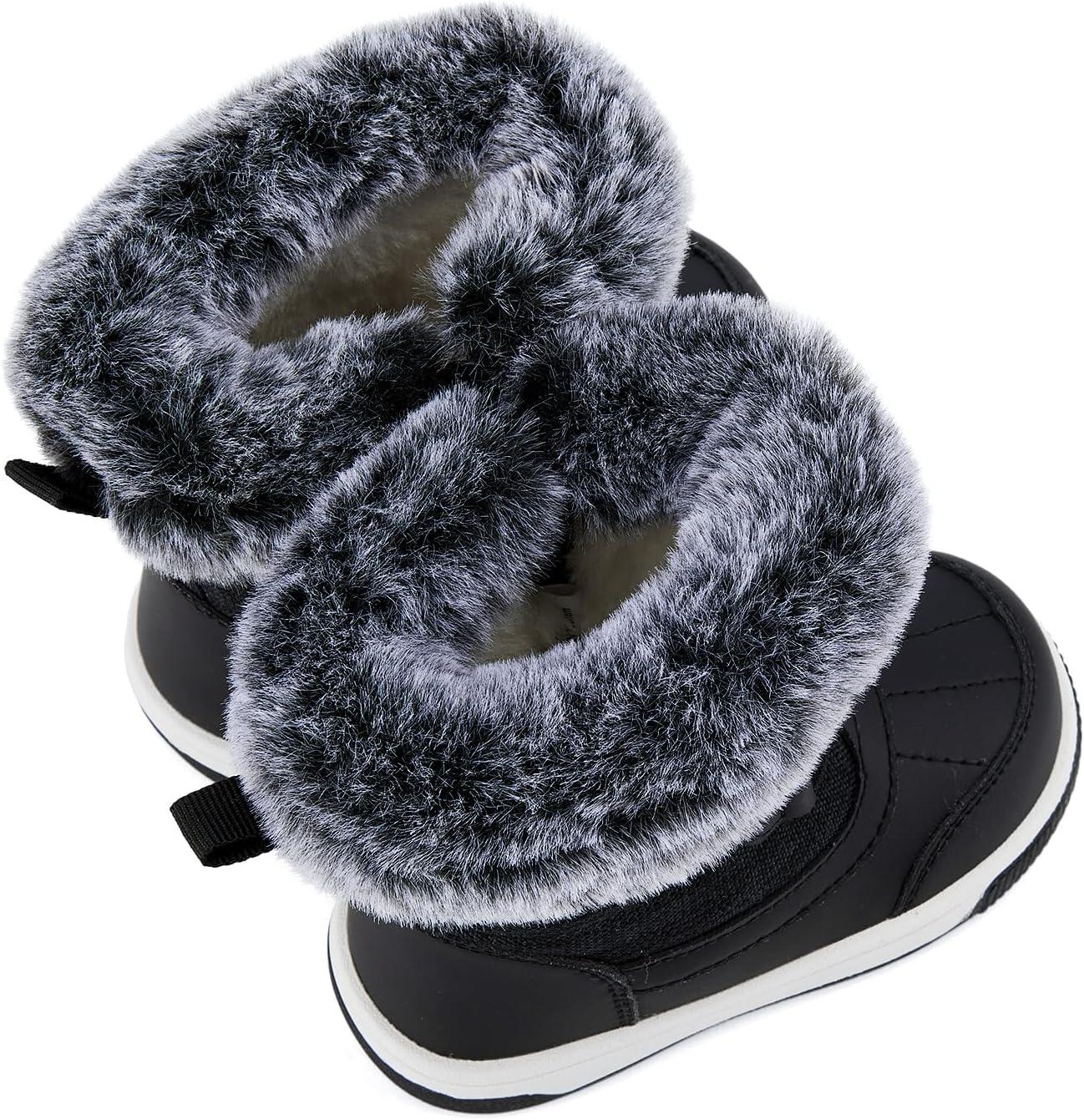 BMCiTYBM Toddler Boy Girl Snow Boots Waterproof Winter Warm Shoes Baby High Top Nonslip Lightweight Outdoor Sneakers for Cold Weather (Infant/Toddler)(A-black)