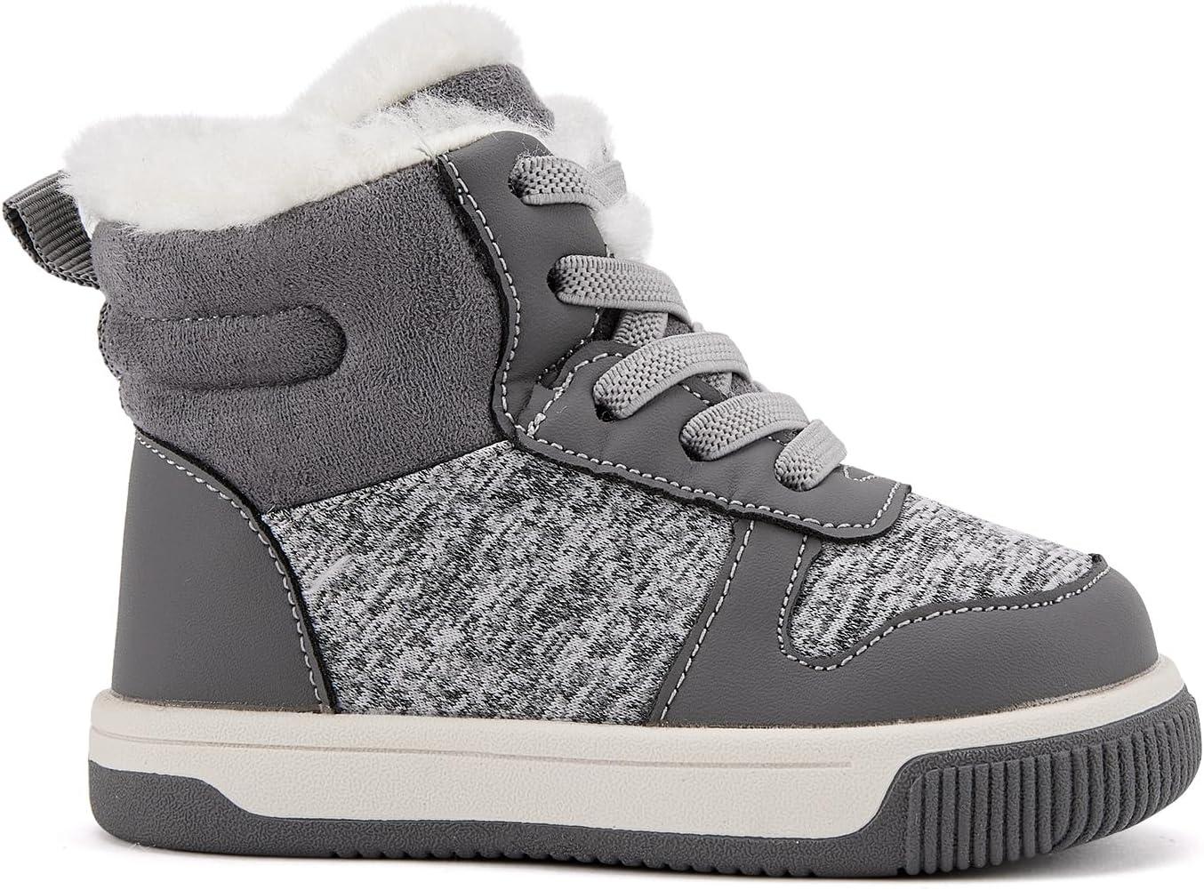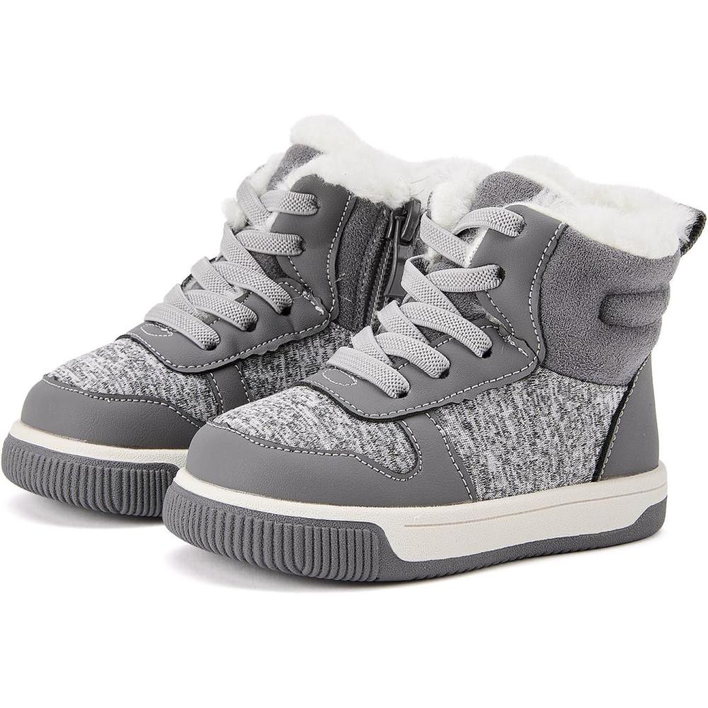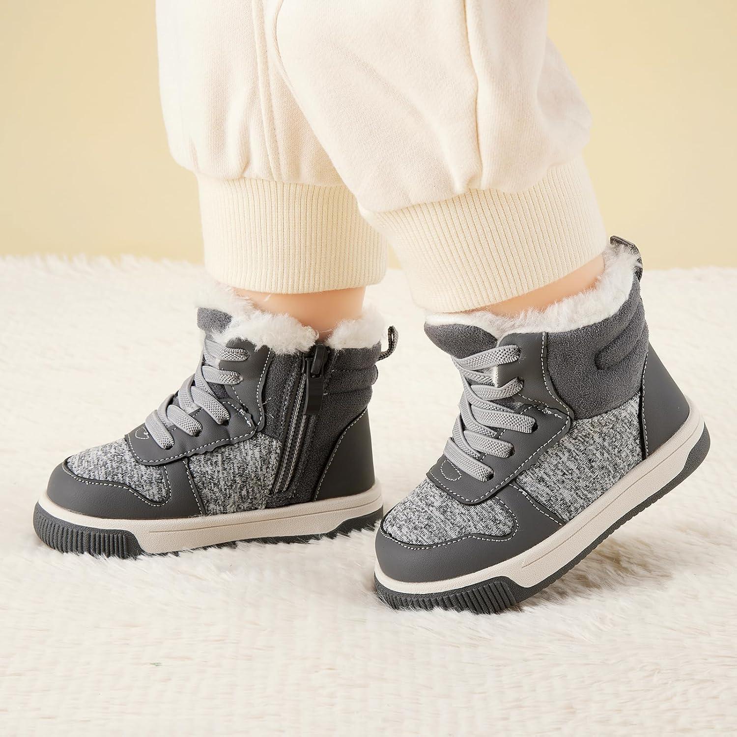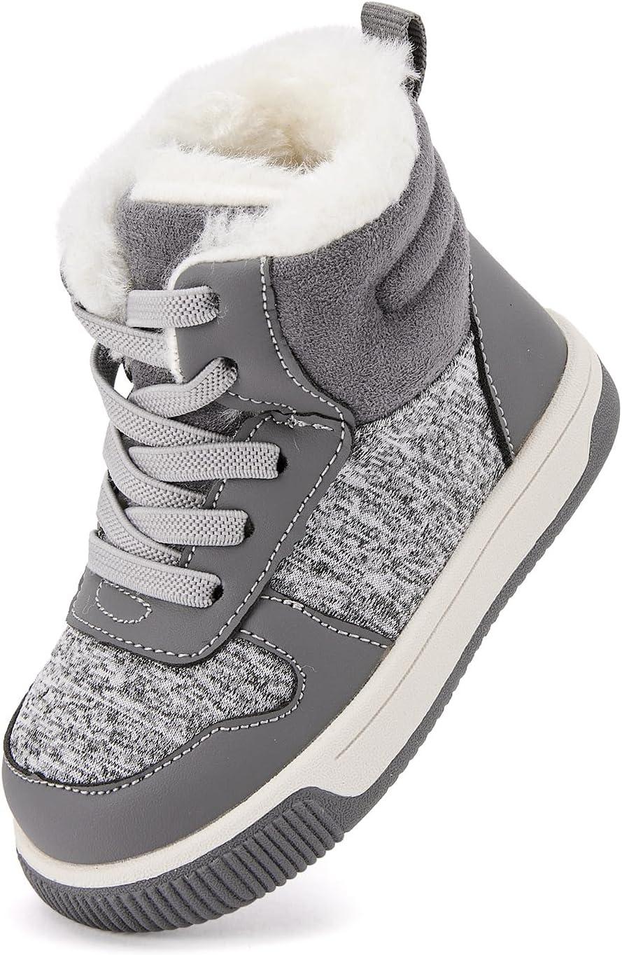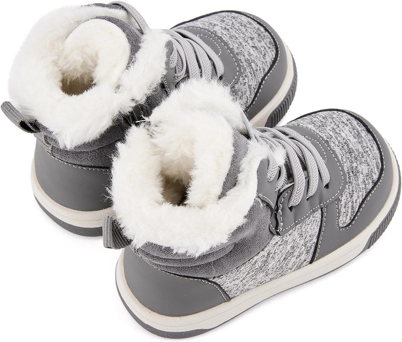 BMCiTYBM Toddler Boy Girl Snow Boots Waterproof Winter Warm Shoes Baby High Top Nonslip Lightweight Outdoor Sneakers for Cold Weather (Infant/Toddler)(B-grey)