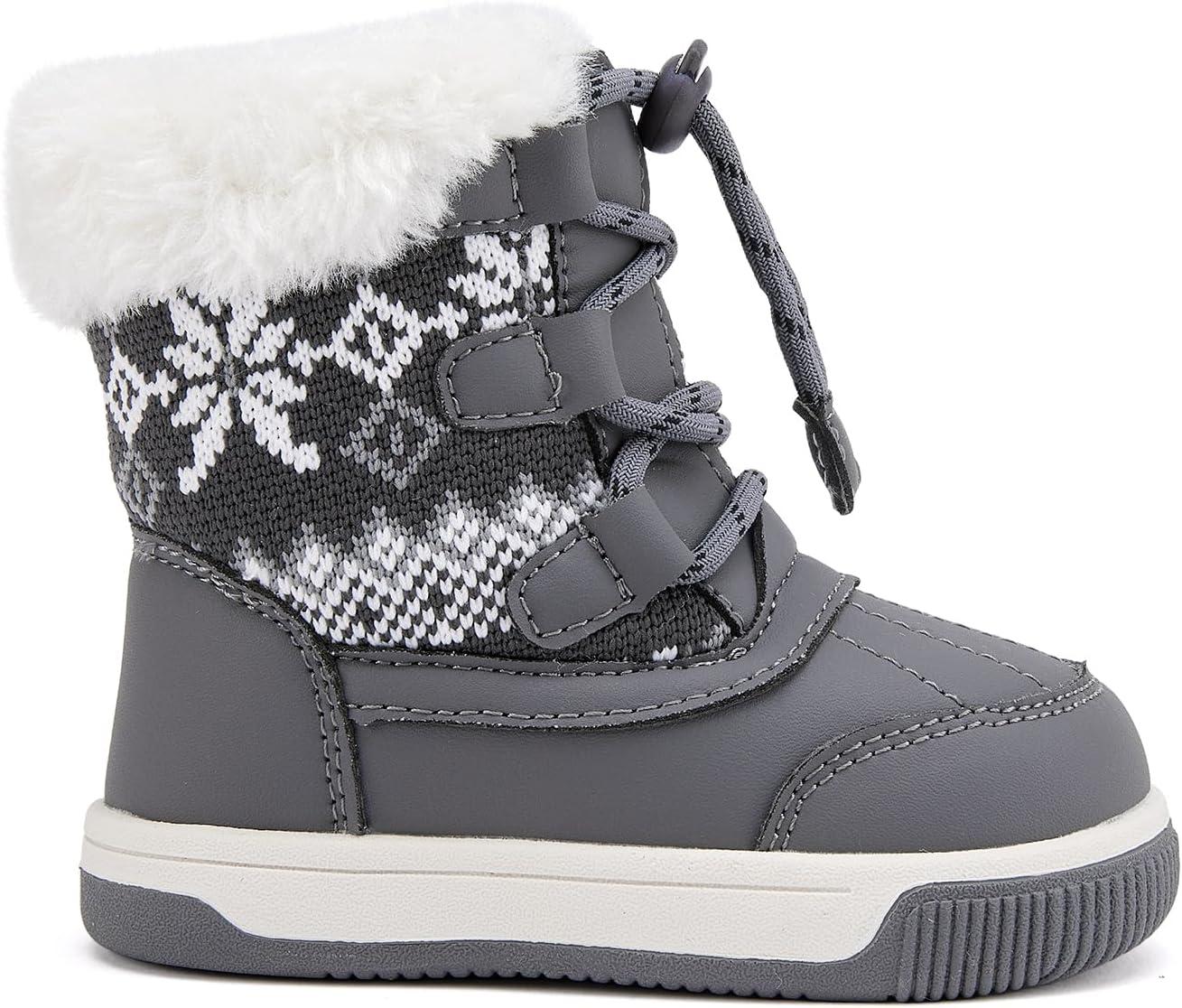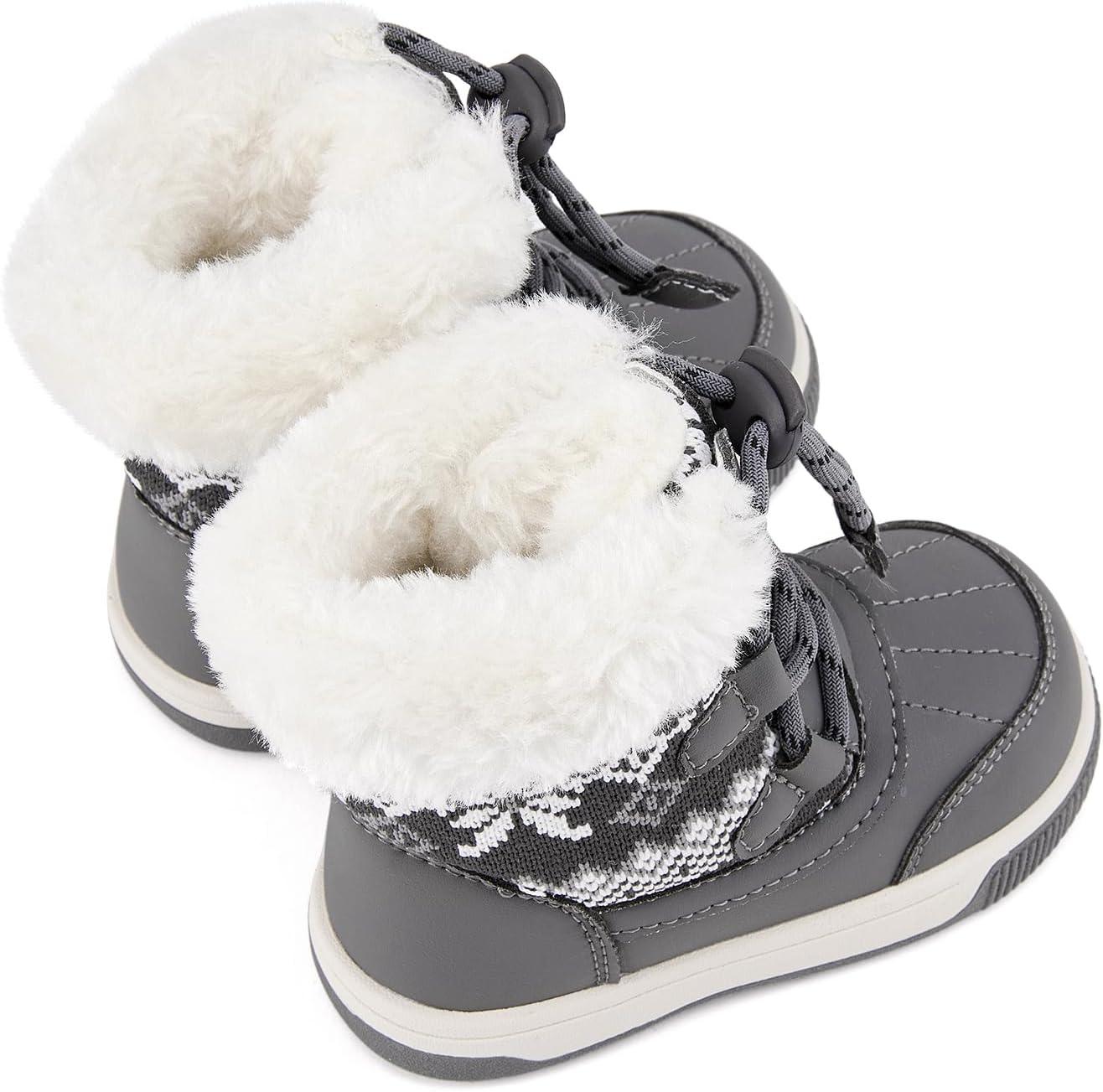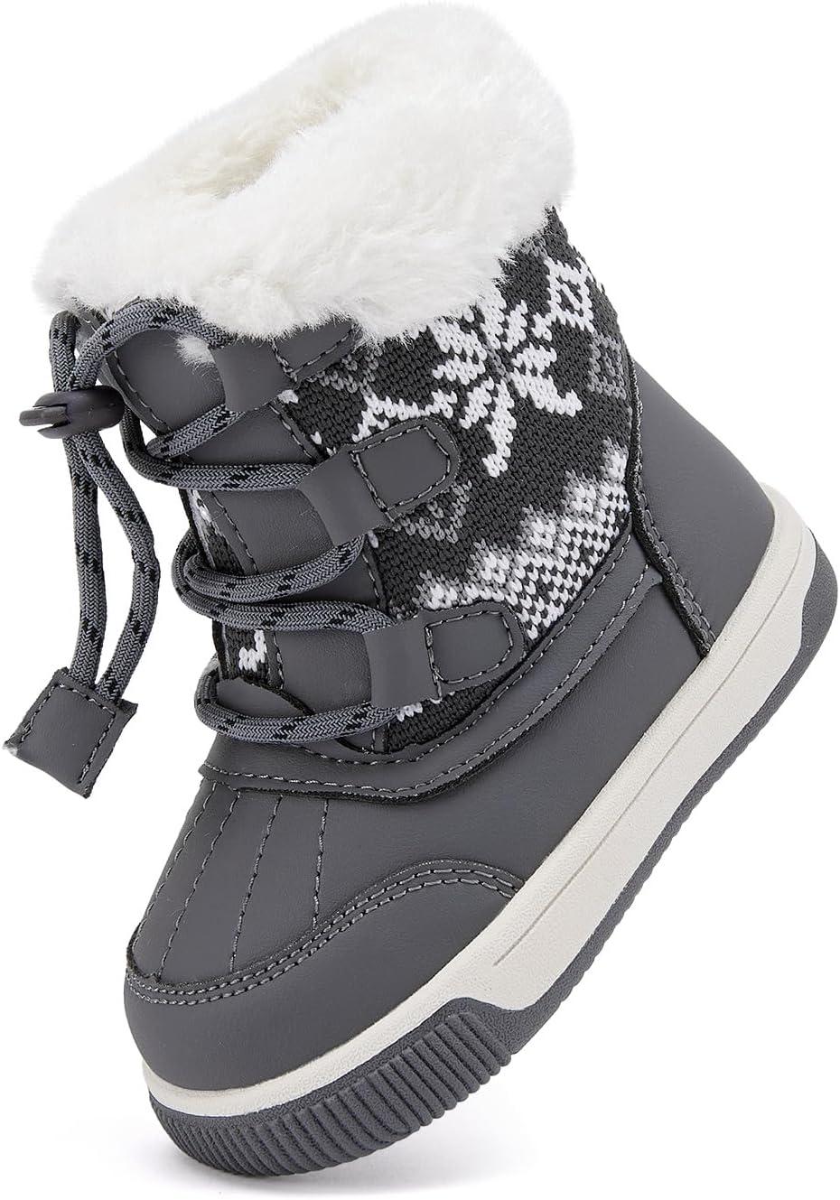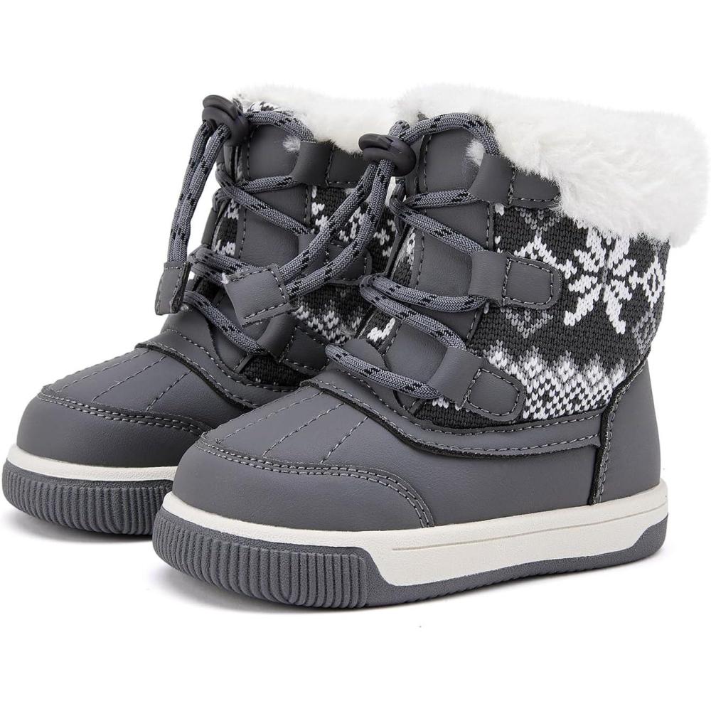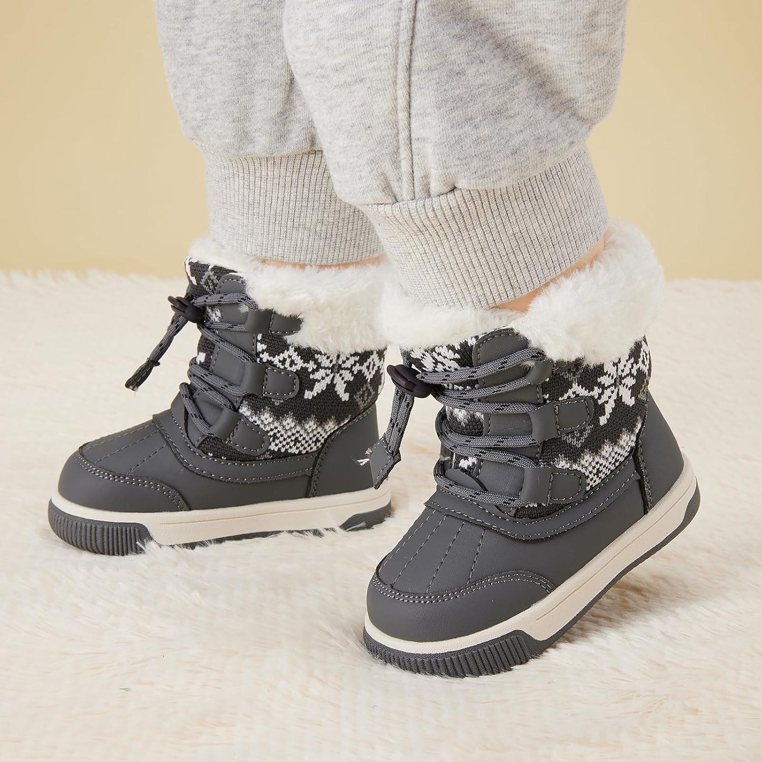 BMCiTYBM Toddler Boy Girl Snow Boots Waterproof Winter Warm Shoes Baby High Top Nonslip Lightweight Outdoor Sneakers for Cold Weather (Infant/Toddler)(C-grey)