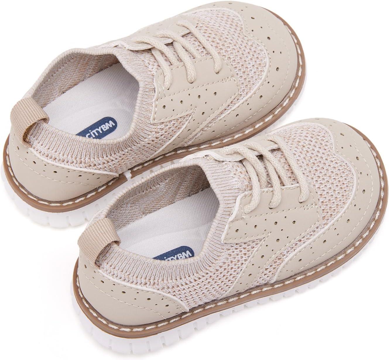 BMCiTYBM Toddler Boys Girls Slip On Shoes Comfortable Walking Sneakers Mesh Oxford Casual Dress Shoes School Uniform Loafers(B-khaki)