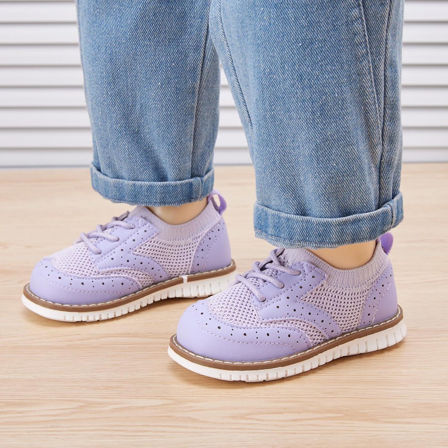 BMCiTYBM Toddler Boys Girls Slip On Shoes Comfortable Walking Sneakers Mesh Oxford Casual Dress Shoes School Uniform Loafers(B-purple)