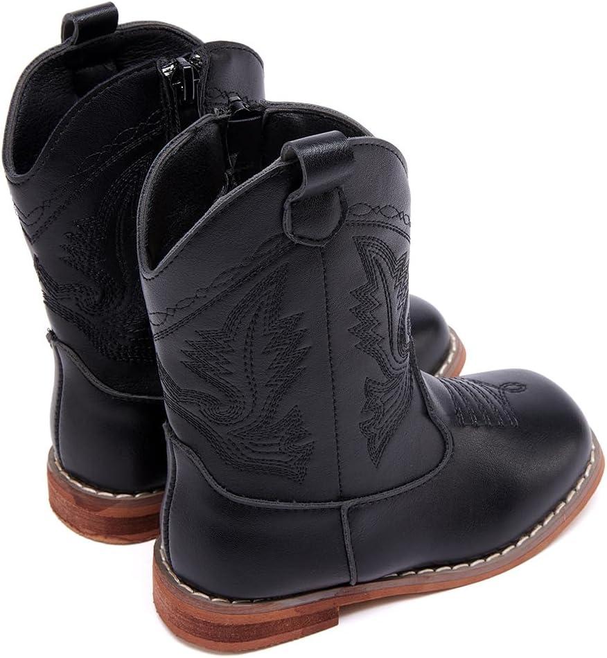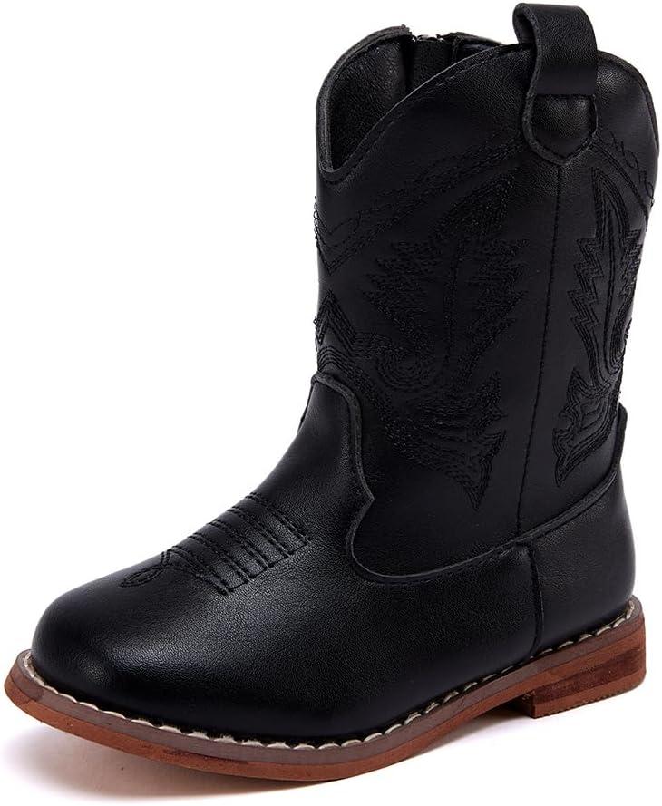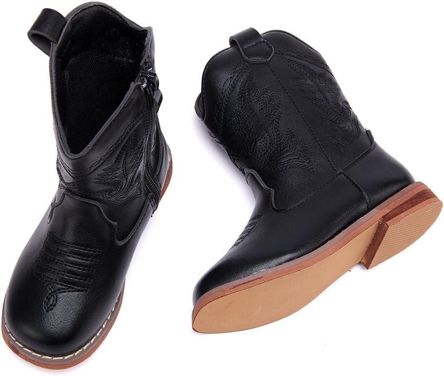 BMCiTYBM Toddler Cowboy Boots Western Cowgirl Boots Boys Girls Mid Calf Square Toe Riding Walking Shoes(A-black)
