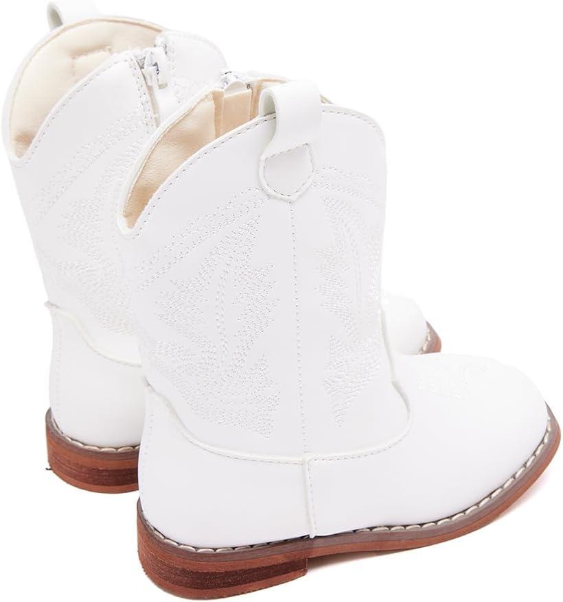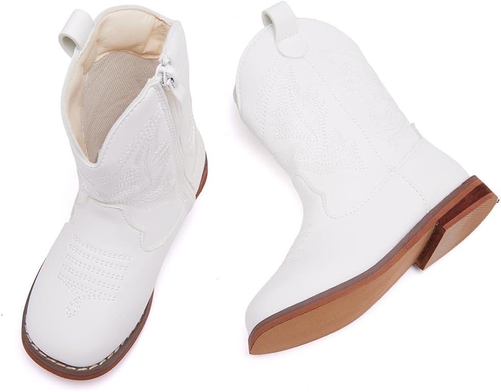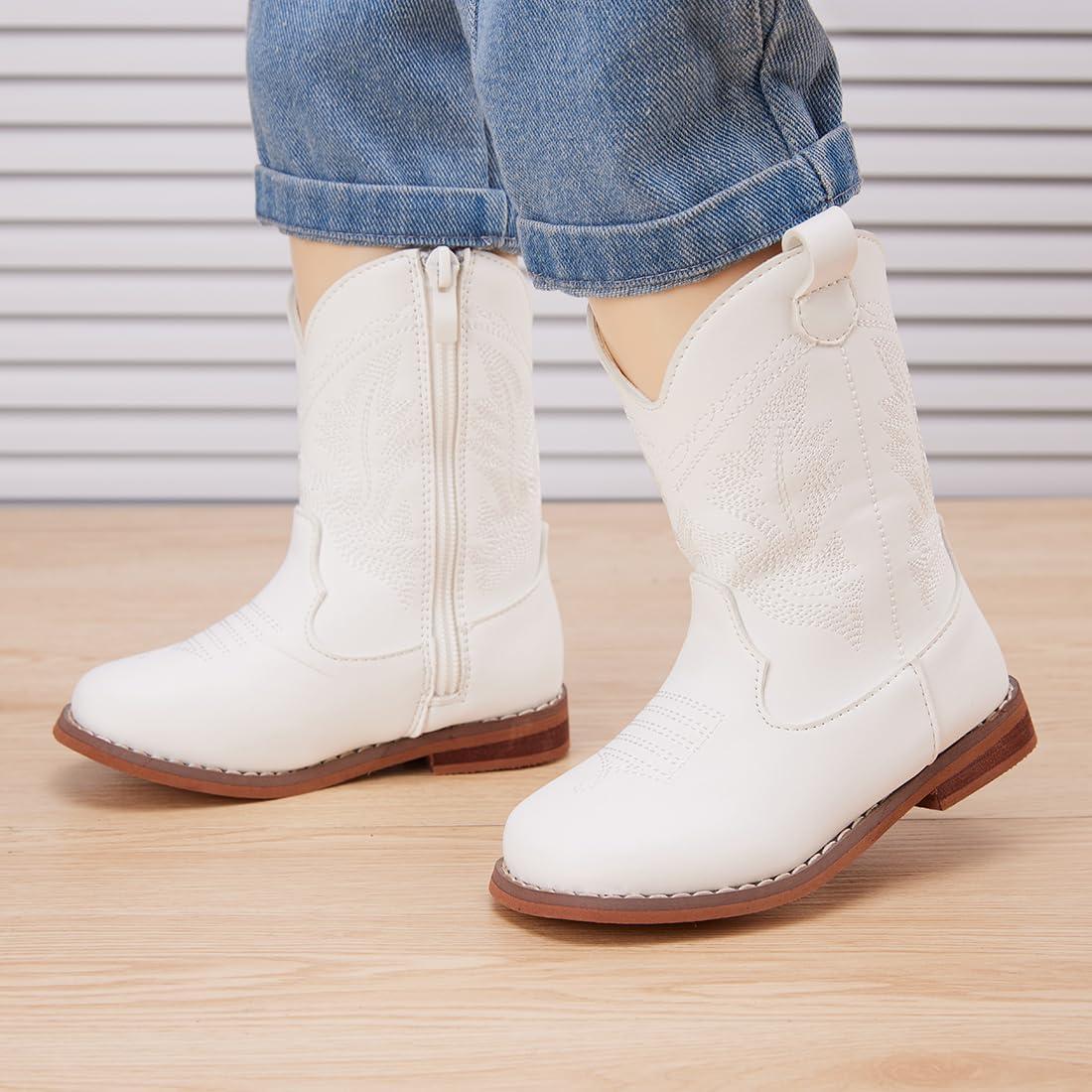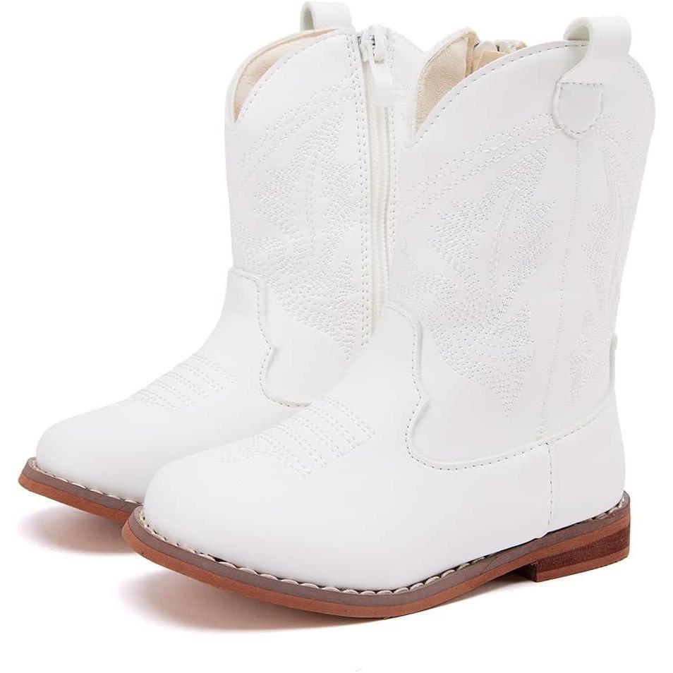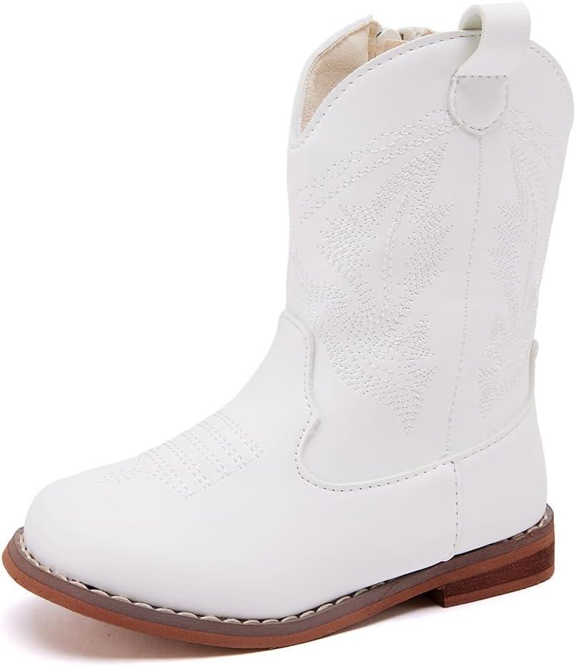 BMCiTYBM Toddler Cowboy Boots Western Cowgirl Boots Boys Girls Mid Calf Square Toe Riding Walking Shoes(A-white)