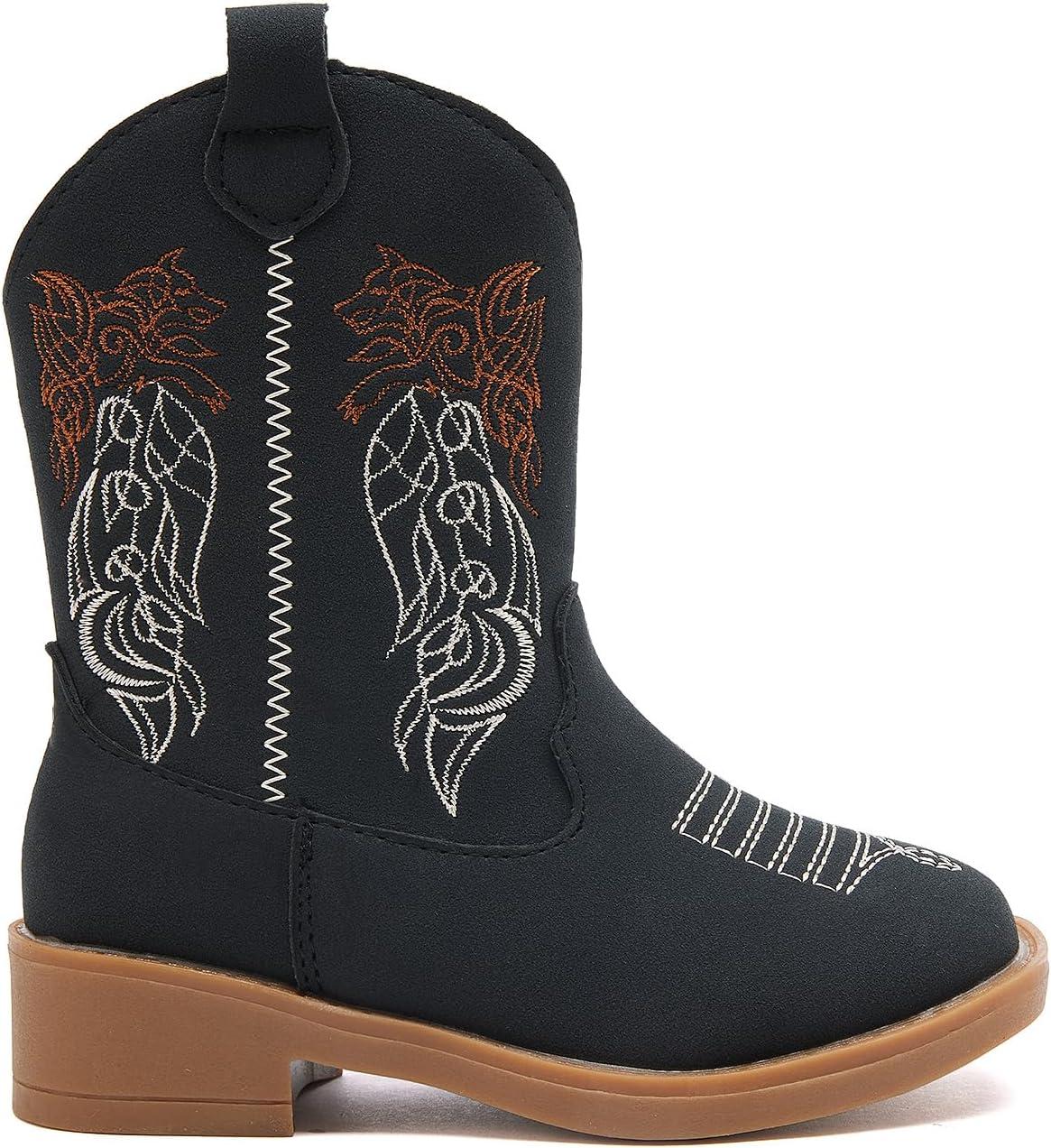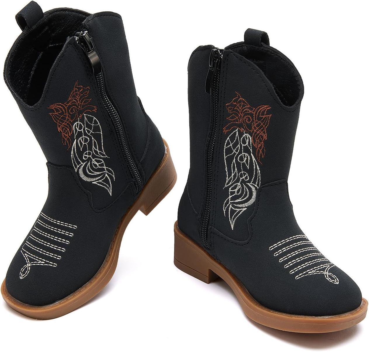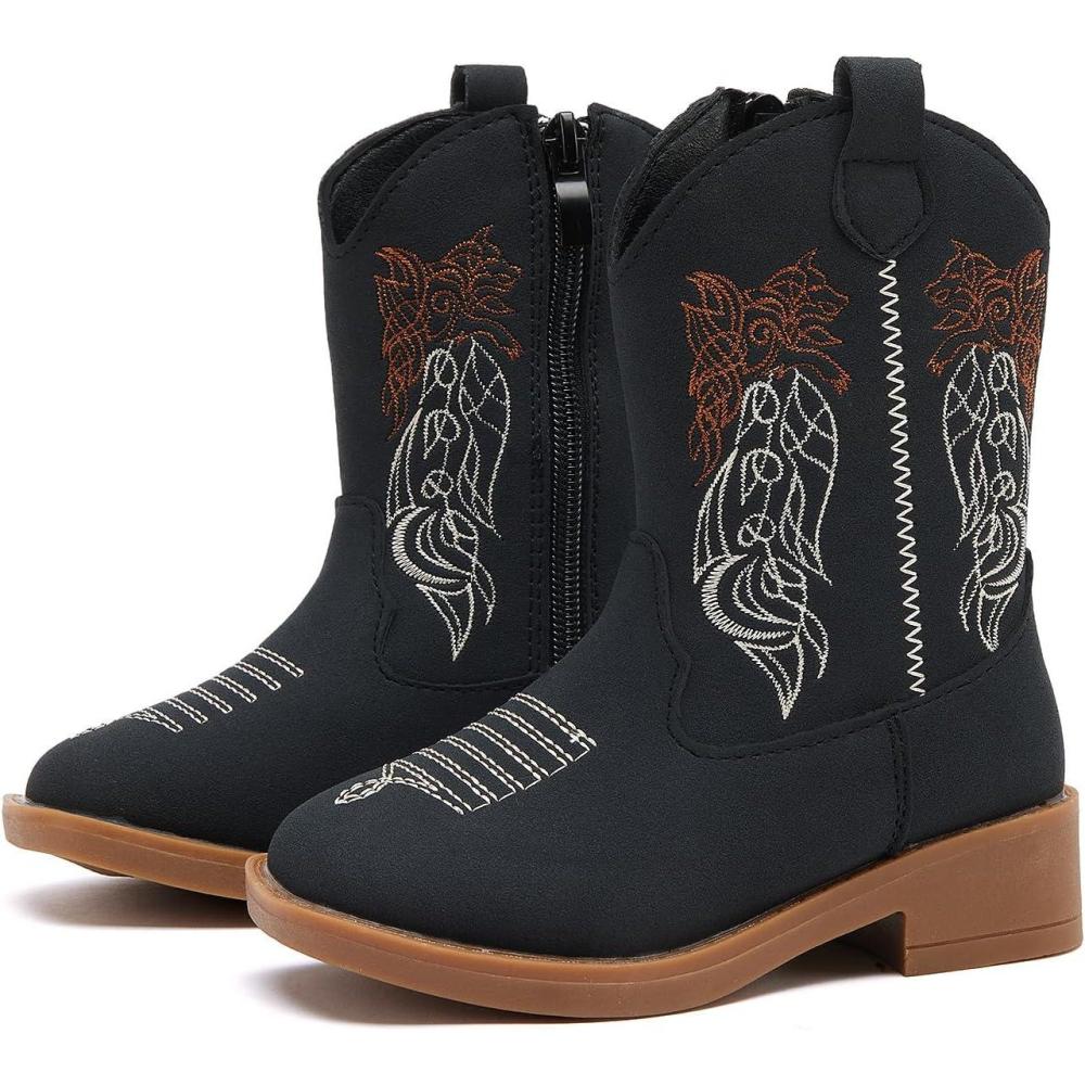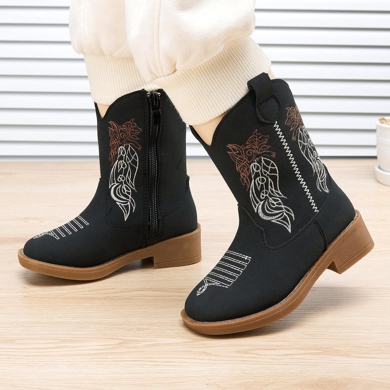 BMCiTYBM Toddler Cowgirl Cowboy Boots Boys Girls Square Toe Western Boots Mid Calf Side Zipper Riding Shoes for All Seasons(A-black)
