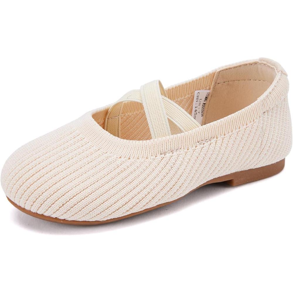 BMCiTYBM Toddler Girl Ballet Flats Comfortable Knit Casual Dressy Shoes for Girl Party School Shoes(B-camel)