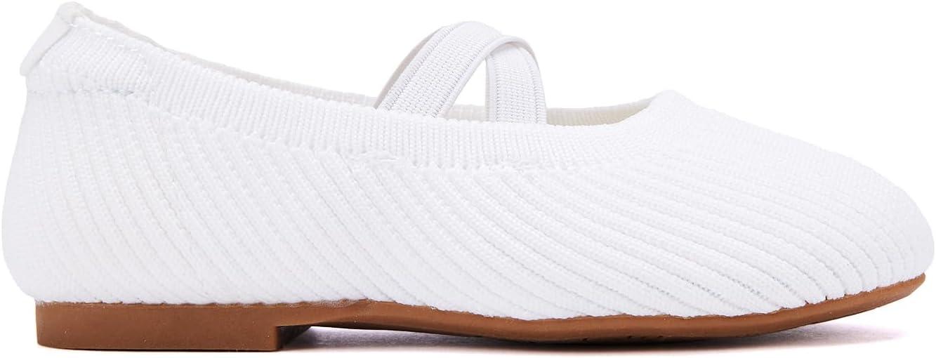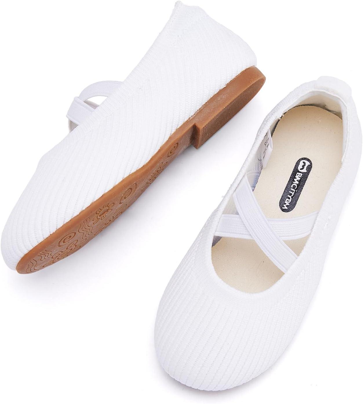 BMCiTYBM Toddler Girl Ballet Flats Comfortable Knit Casual Dressy Shoes for Girl Party School Shoes(B-white)