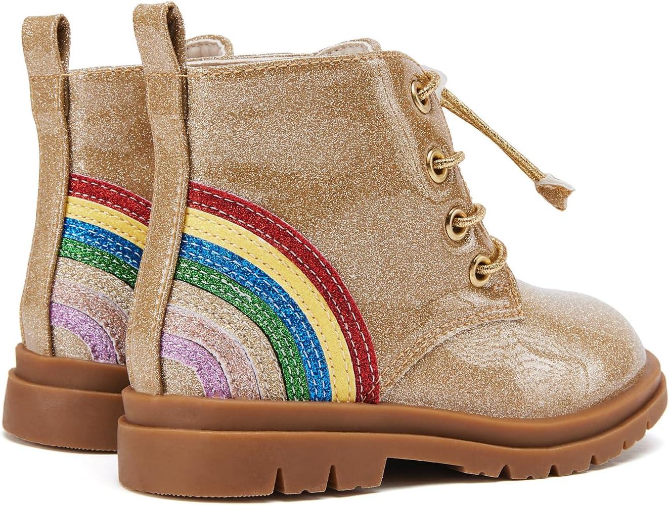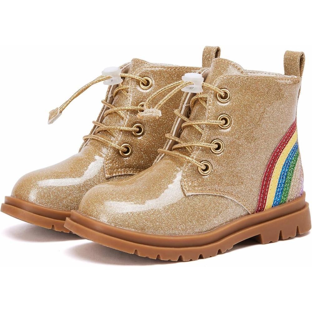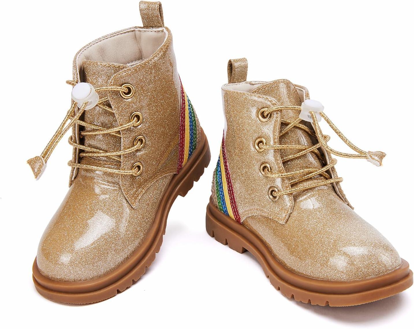 BMCiTYBM Toddler Girls Boots Round Toe Lace Up Combat Boots Riding Ankle Calf Shoes for All Seasons(Toddler/Little Kid(A-gittler Gold)