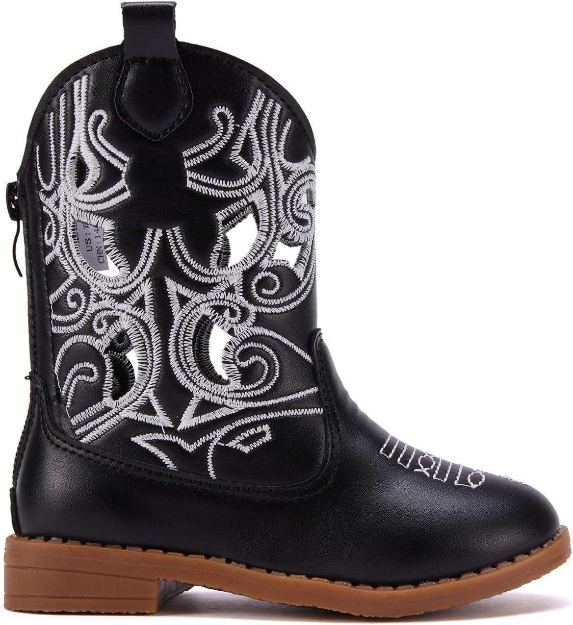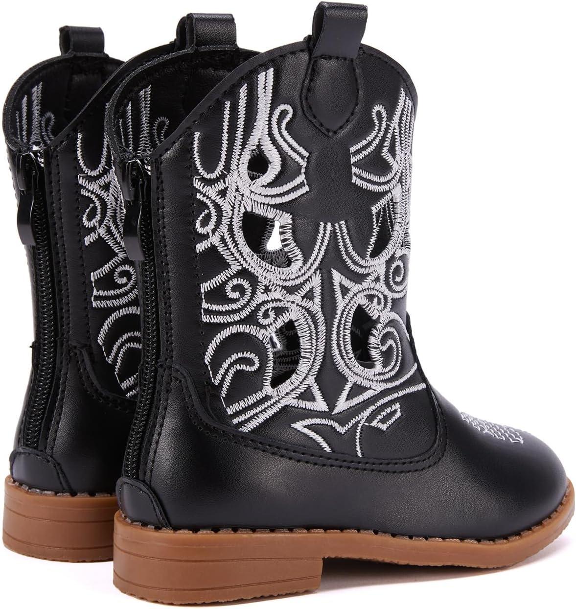 BMCiTYBM Toddler Girls Cowboy Cowgirl Boots Little Kids Pointed Toe Western Boots Mid Calf Side Zipper Riding Shoes for All Seasons (Toddler/Little Kid)(A-black)
