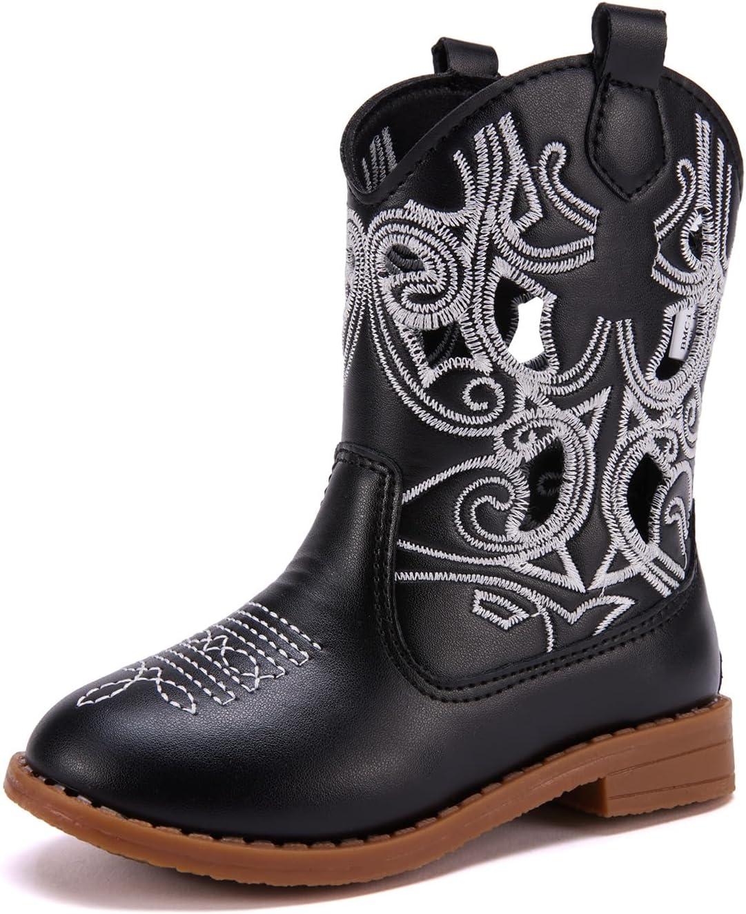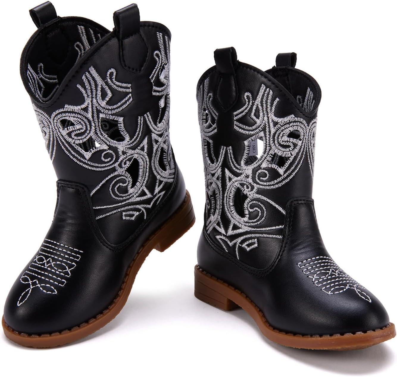 BMCiTYBM Toddler Girls Cowboy Cowgirl Boots Little Kids Pointed Toe Western Boots Mid Calf Side Zipper Riding Shoes for All Seasons (Toddler/Little Kid)(B-black)